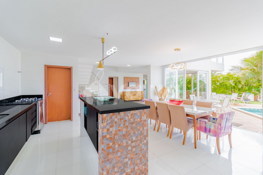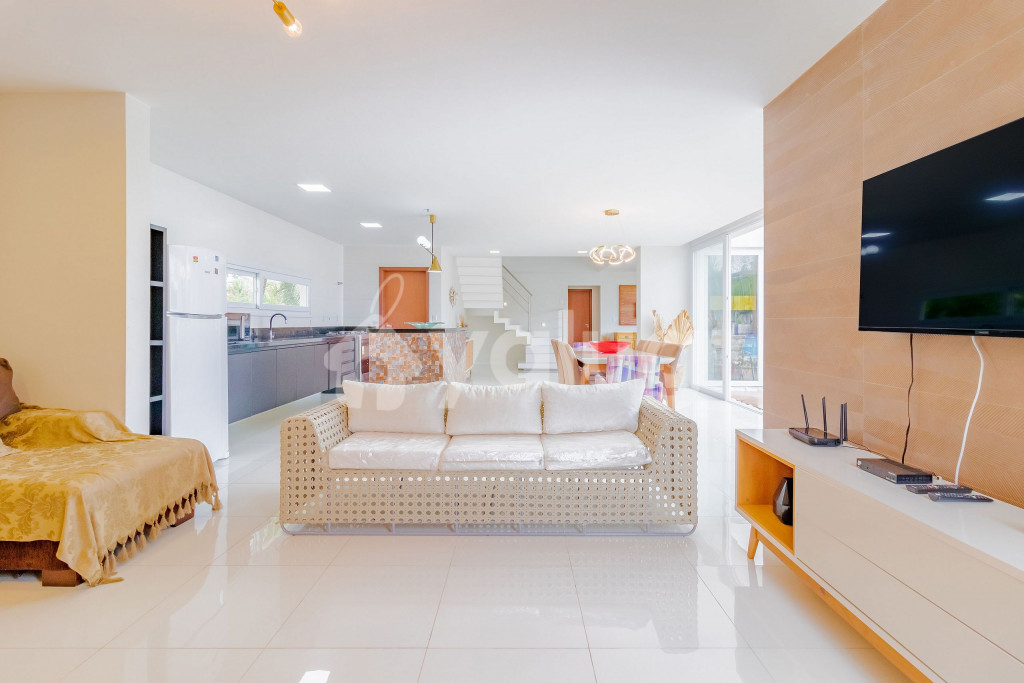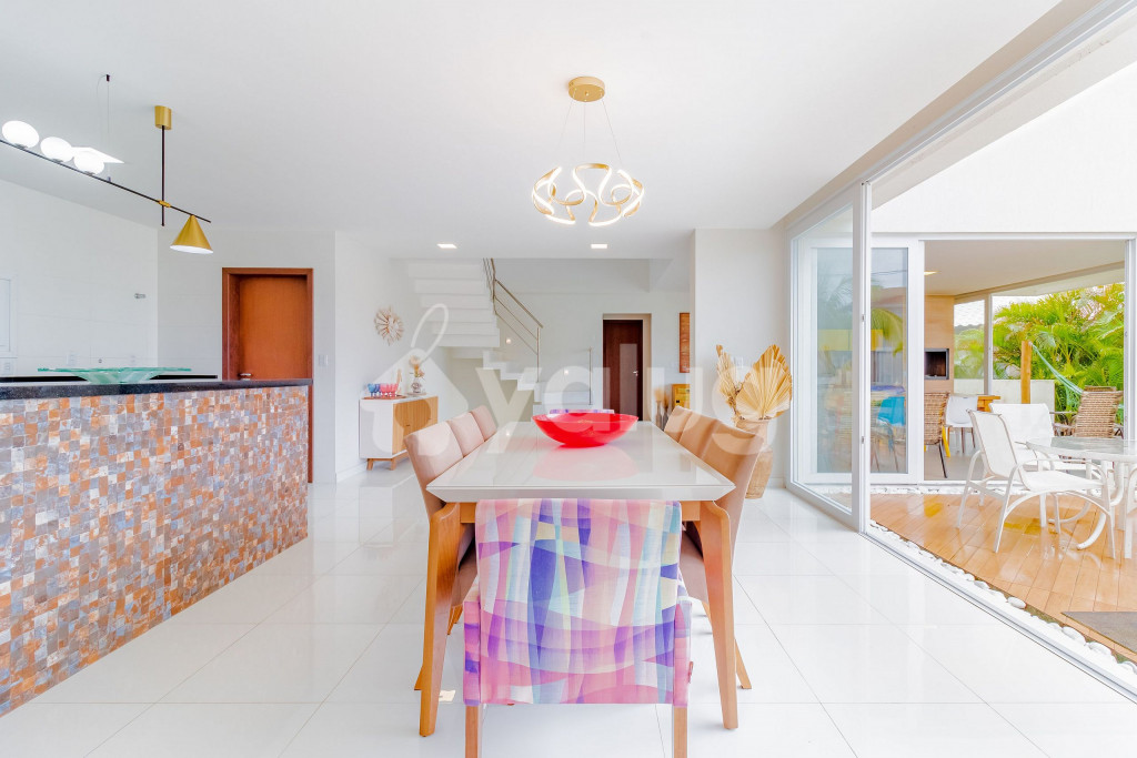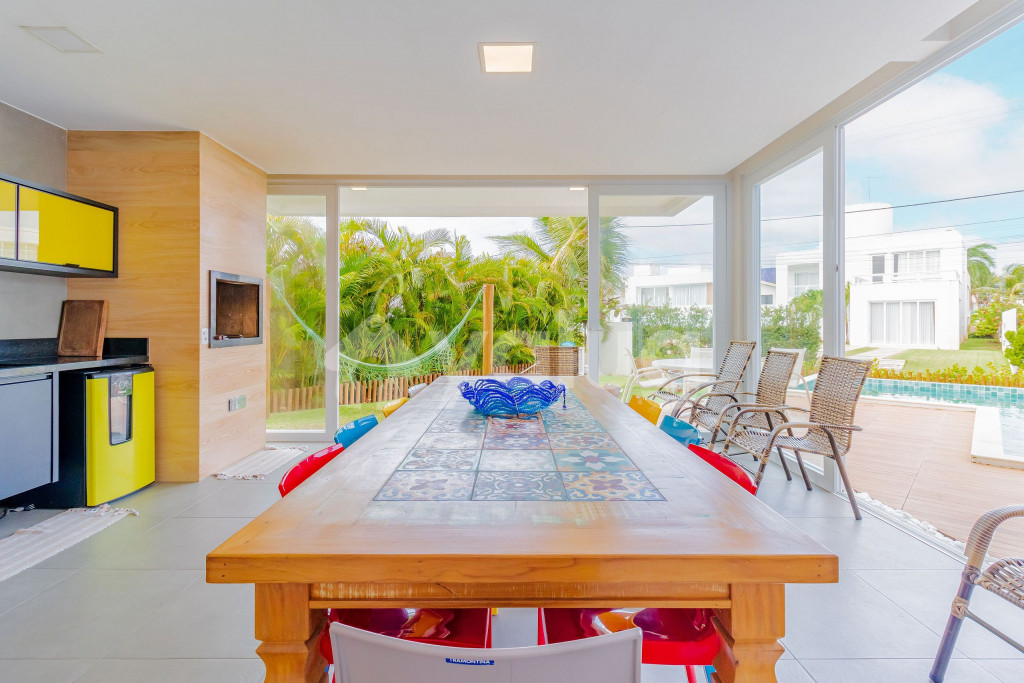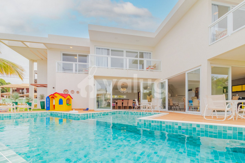 Excelente casa, recém construída, decorada e totalmente equipada! São 5 suítes com ar condicionado split, 1 quarto dependência, wi-fi, sala de estar com Smart TV e cozinha completa. Além disso, possui ótima área externa com parquinho infantil, piscina, jardim e churrasqueira.