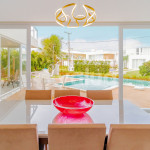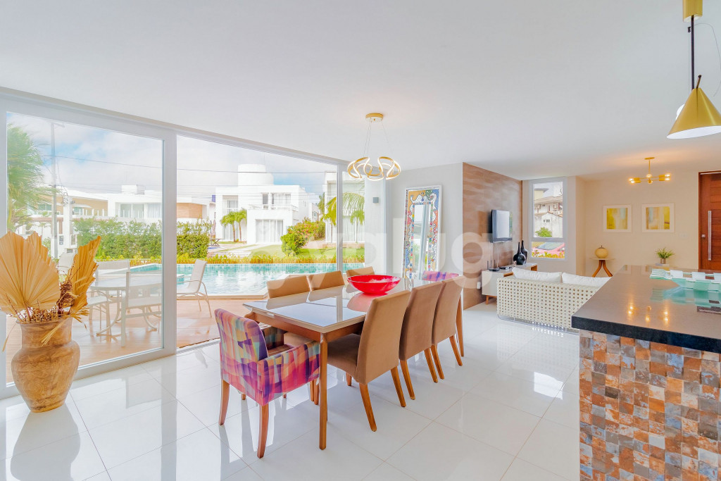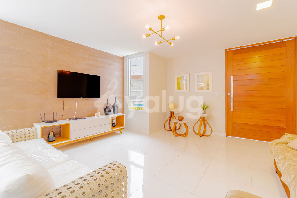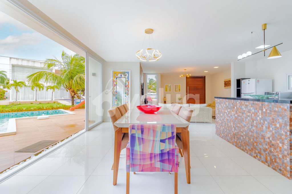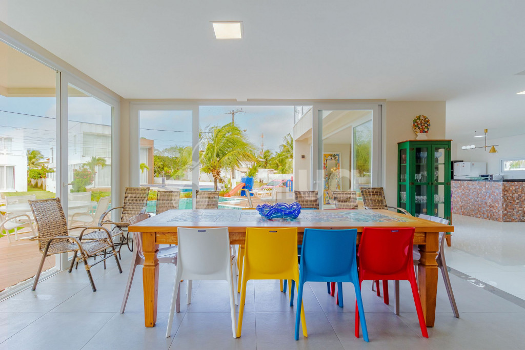 Excelente casa, recém construída, decorada e totalmente equipada! São 5 suítes com ar condicionado split, 1 quarto dependência, wi-fi, sala de estar com Smart TV e cozinha completa. Além disso, possui ótima área externa com parquinho infantil, piscina, jardim e churrasqueira.