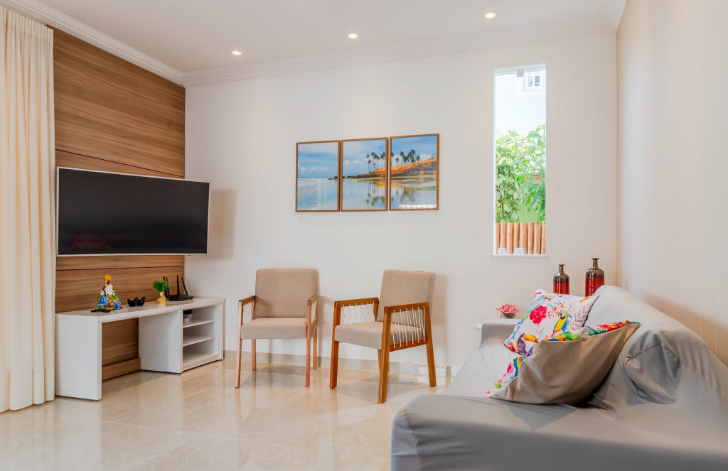 Meu espaço dispõe de 4 suítes com ar condicionado split, sala de estar com smart tv, wi-fi e cozinha completa. Na área externa, varanda, churrasqueira e piscina, ideal para quem busca um ambiente tranquilo para descansar!