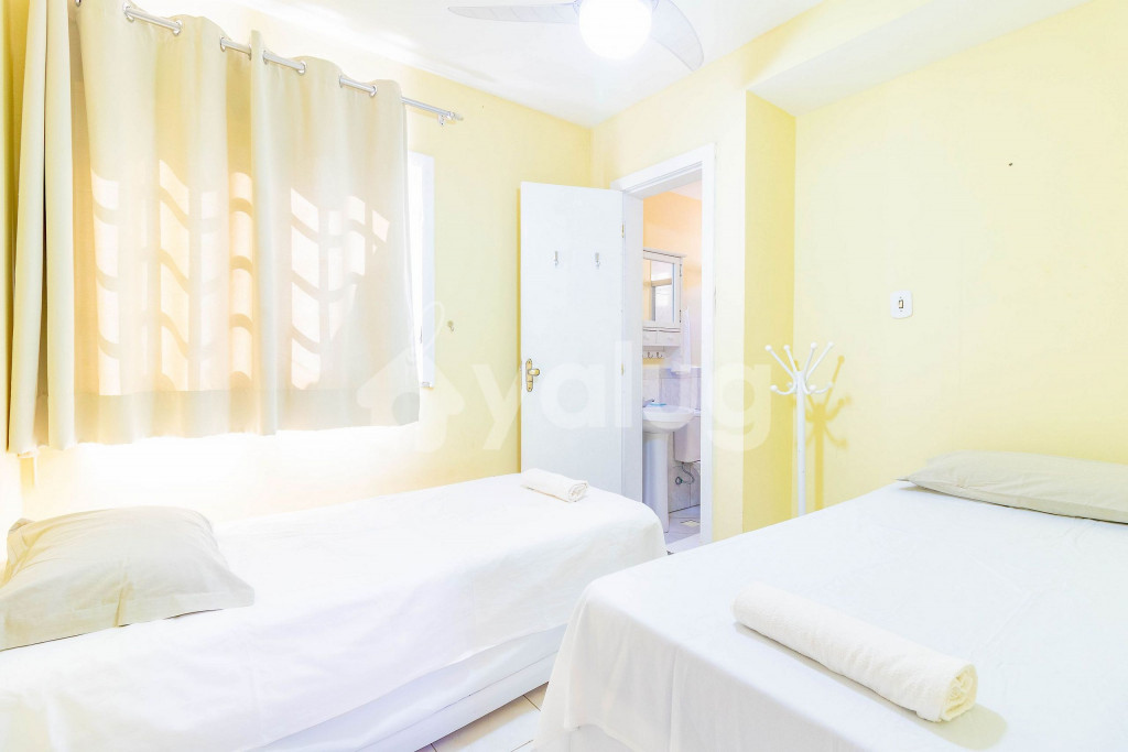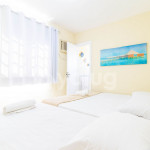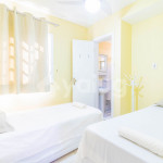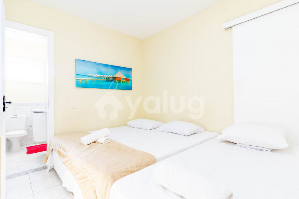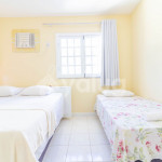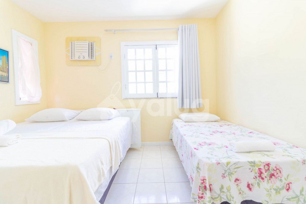 A composição dos quartos é da seguinte forma:Suíte 1 (Térreo): 2 camas solteiro, 1 colchão solteiro, ventilador e cortina blackout;Suíte 2 (Superior): 1 cama queen, tv, ar condicionado tipo splt, cortina blackout e armário;Suíte 3 (Superior): 2 camas solteiro, 1 bicama, tv, ar condicionado tipo janela e cortina blackout;Suíte 4 (Superior): 2 camas solteiro, 1 bicama, 1 colchão solteiro, ar condicionado tipo split e cortina blackout;