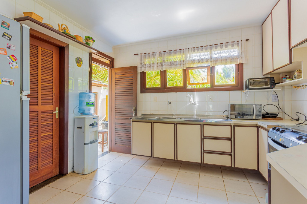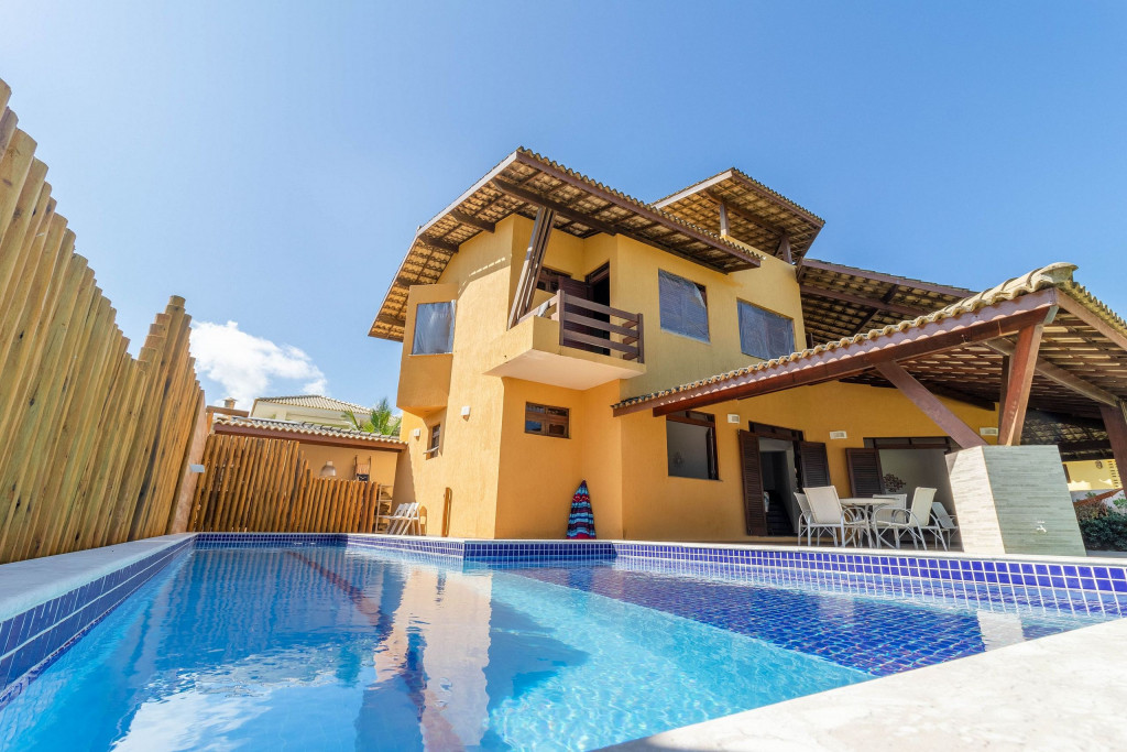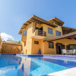 São 4 suítes (1 no térreo), ambas climatizadas, wi-fi, sala de estar e cozinha completa. Na área externa possui uma maravilhosa piscina, sombreiros e espaço gourmet com churrasqueira.