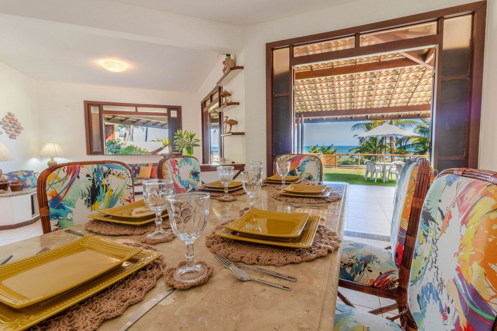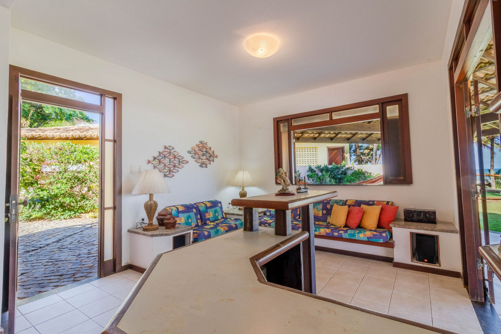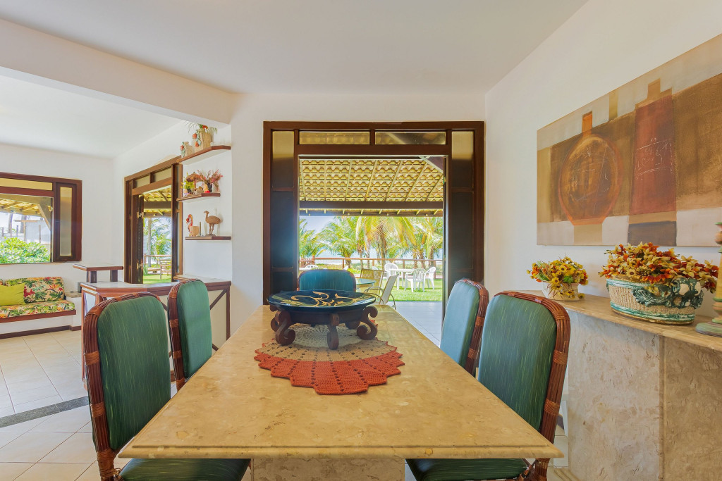 Casa com linda vista para o mar e coqueiros (pé na areia), na melhor praia de Guarajuba! Localizada no Condomínio Paraíso, a 300m das melhores barracas de praia (Prefeitinho e Carlinhos), além disso, conta com total infraestrutura, área com campo de futebol gramado e areia, parque infantil e segurança 24hr.
