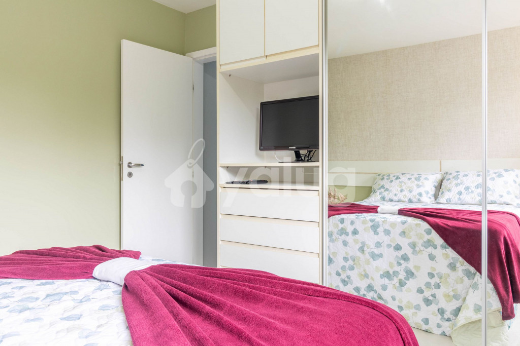 Quarto 2: 1 cama casal, 1 cama solteiro, ar condicionado split, cortina blackout e armário;* Os quartos 1 e 2 compartilham de um banheiro, onde ambas poderão se transformar em uma suíte.