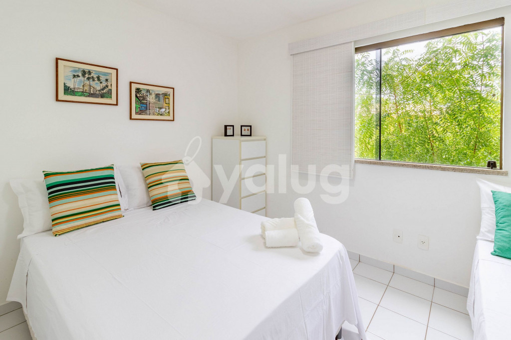 Apartamento fica no 1º andar do prédio.O Condomínio dispõe de uma estrutura digna de resort: segurança 24 horas, recepção, quadra poliesportiva, uma linda piscina, espaço relax, churrasqueiras, parque infantil, salão de jogos e um contato direto com a natureza.Guarajuba é uma das mais belas praia do Litoral Norte, excelente para entrar em contato com a natureza e descansar! Possui o certificado de Bandeira Azul, um dos rótulos ecológicos voluntários mais reconhecidos do mundo e que apenas 14 praias conquistaram. Esse símbolo representa que existe um turismo sustentável combinado com a intensa preservação do meio ambiente.Algumas distâncias: