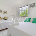 Quarto 1: 1 cama casal, ar condicionado tipo janela, cortina blackout e armário;Quarto 2: 2 camas casal, ar condicionado tipo janela, cortina blackout e armário.OBS.: Possui um banheiro entre os quartos 1 e 2, que poderá ser isolado em um dos quartos, transformando assim em uma suíte.
