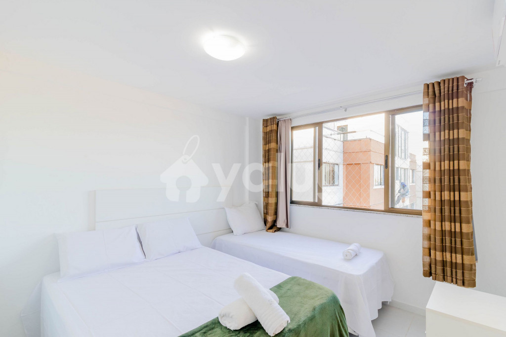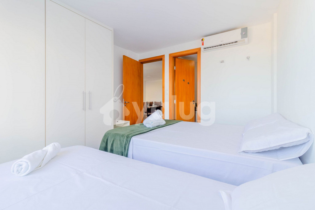Suíte 1: 1 cama casal, 1 cama solteiro, ar condicionado split, cortinas blackout e armários;Suíte 2: 1 cama casal, 1 cama solteiro, ar condicionado split, cortinas blackout e armários.