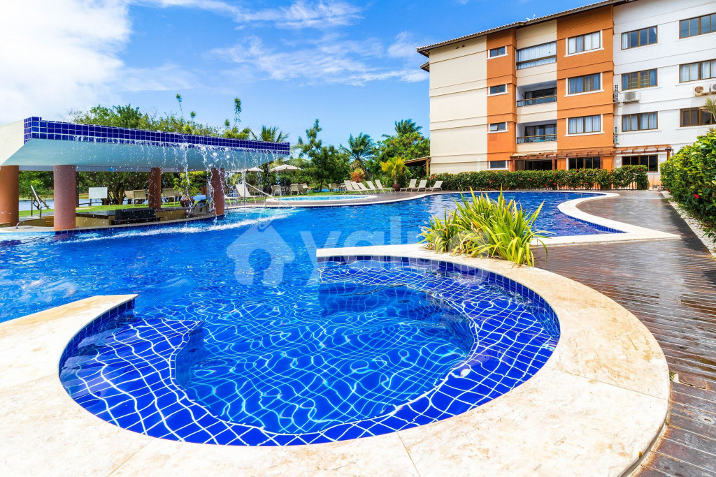 Apartamento localizado no Condomínio Paraíso das Águas em Guarajuba, com ótima estrutura, segurança e recepção 24hr, academia, salão de jogos, redário, parque infantil, piscina adulto e infantil, sauna, hidromassagem, pedalinho, além de uma ampla área verde.