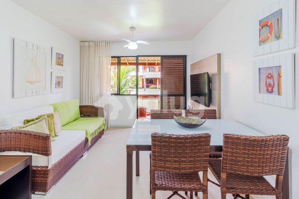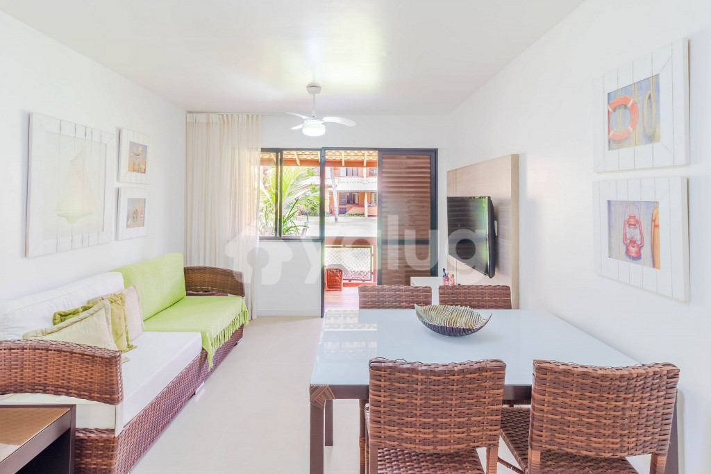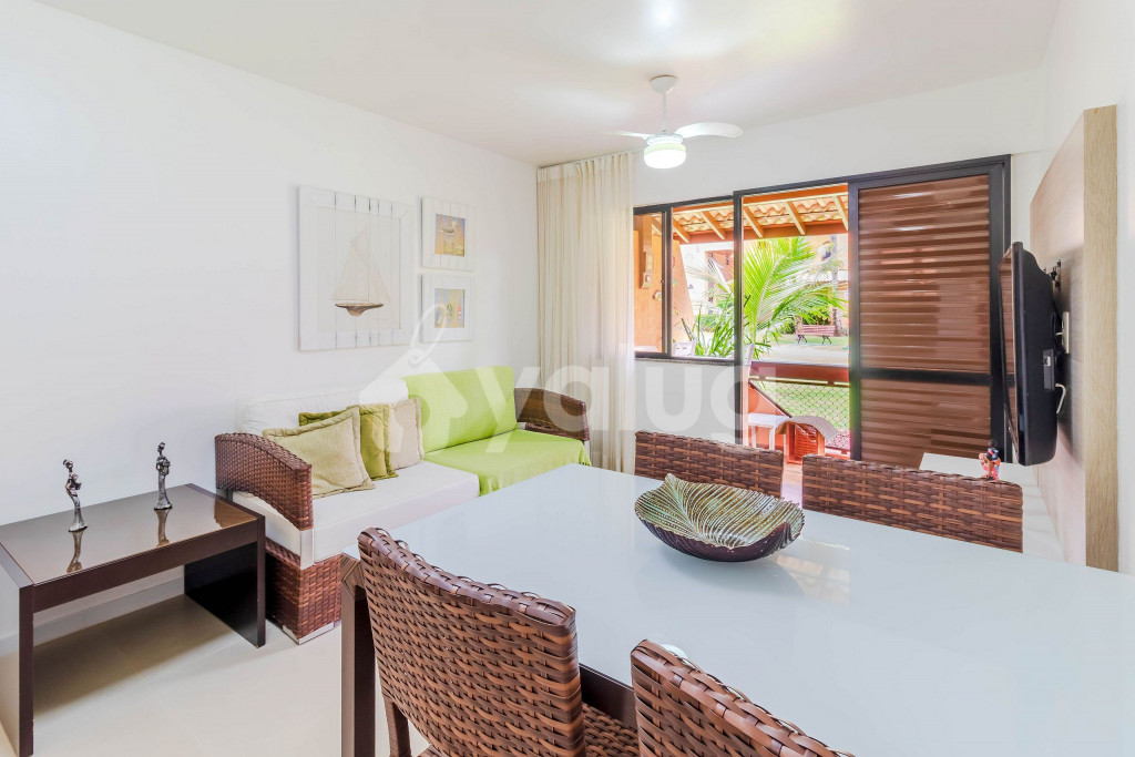 Em Guarajuba, uma das mais belas praias do Litoral Norte da Bahia e que recentemente conquistou o certificado de Bandeira Azul, um dos rótulos ecológicos mais reconhecidos do mundo e que apenas 14 praias conquistaram. Esse símbolo representa que existe um turismo sustentável combinado com a intensa preservação do meio ambiente. O Condomínio dispõe de uma ótima estrutura com segurança 24h, recepção, 2 quadras de tênis, 1 quadra poliesportiva, 1 campo de futebol gramado, parque infantil, pista de cooper, sala de ginástica, jardim, bar em frente à piscina e praia, loja de conveniência e restaurante internos, pracinha, salão de jogos, serviços de encanador, eletricista e arrumadeira (apenas limpa o apto e arruma as camas diariamente), inclusos. *Serviço de lavanderia completo (serviço pago à parte).* Algumas distâncias: - Aeroporto Internacional de Salvador: 30km; - Praia do Forte: 14 km, onde se encontra o projeto Tamar, restaurantes; quiosques com piscinas naturais;
