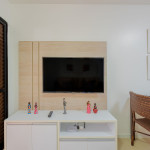 Suíte 1: 1 cama casal, ar condicionado split, cortina blackout, armário e smart tv;