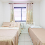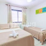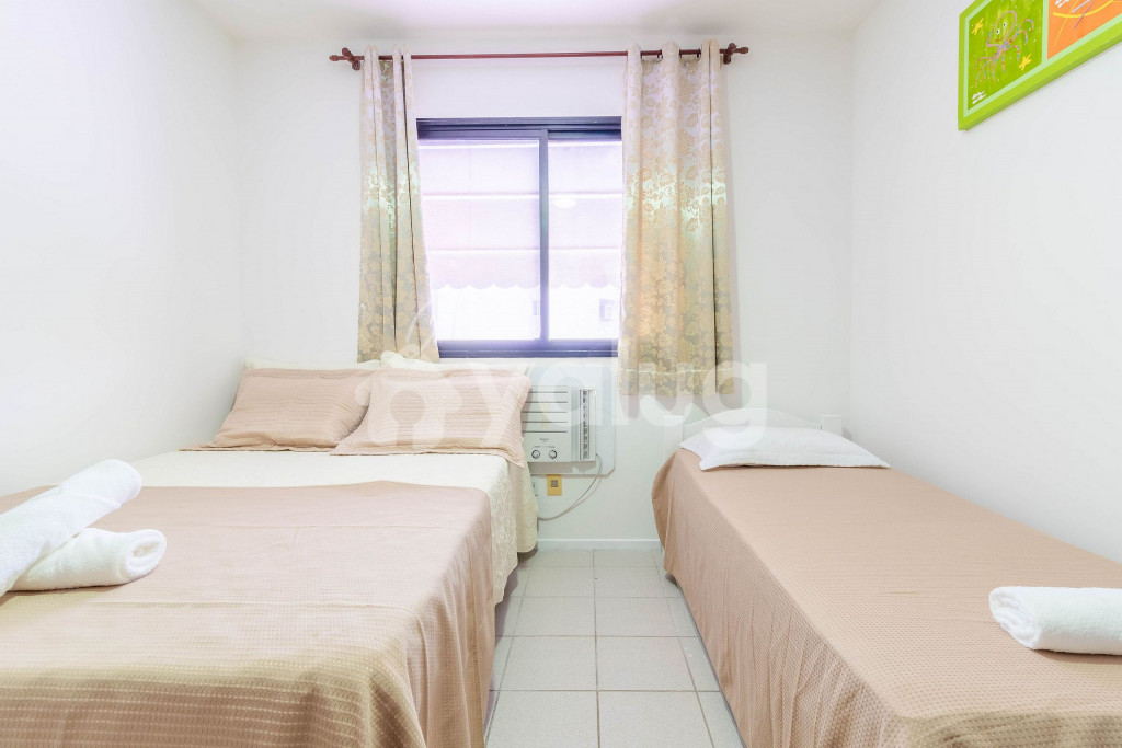 Quarto 1 (Superior): 1 cama casal, 1 cama solteiro, ar condicionado tipo janela, ventilador, cortina blackout e armários;