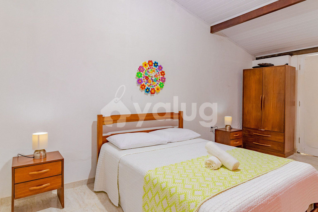 - Suíte 1 (Térreo): 1 cama casal, ar condicionado tipo split, ventilador, Smart Tv, armário e cortina blackout.- Suíte 2 (Térreo): 1 cama casal, ar condicionado tipo split, ventilador, armário e cortina blackout.- Suíte 3 (Superior): 1 cama Queen, ar condicionado tipo split, ventilador, armário e cortina blackout.