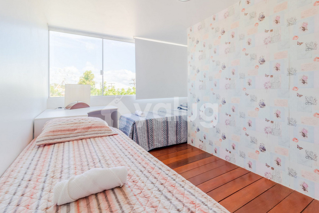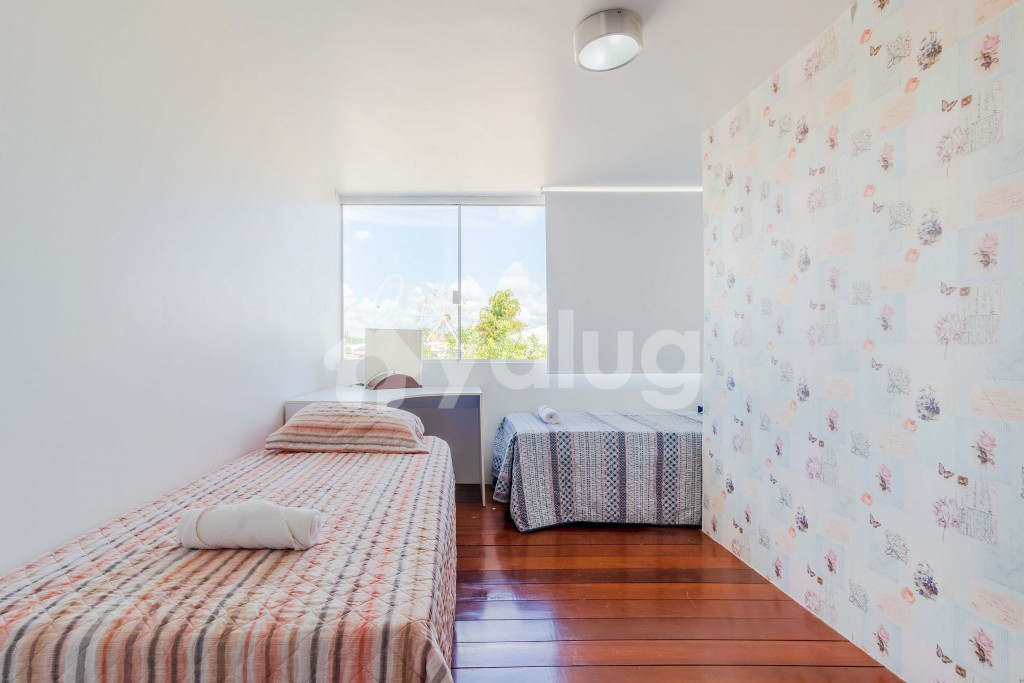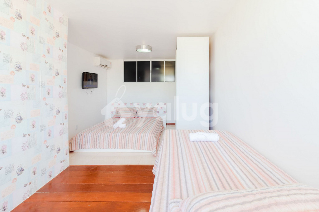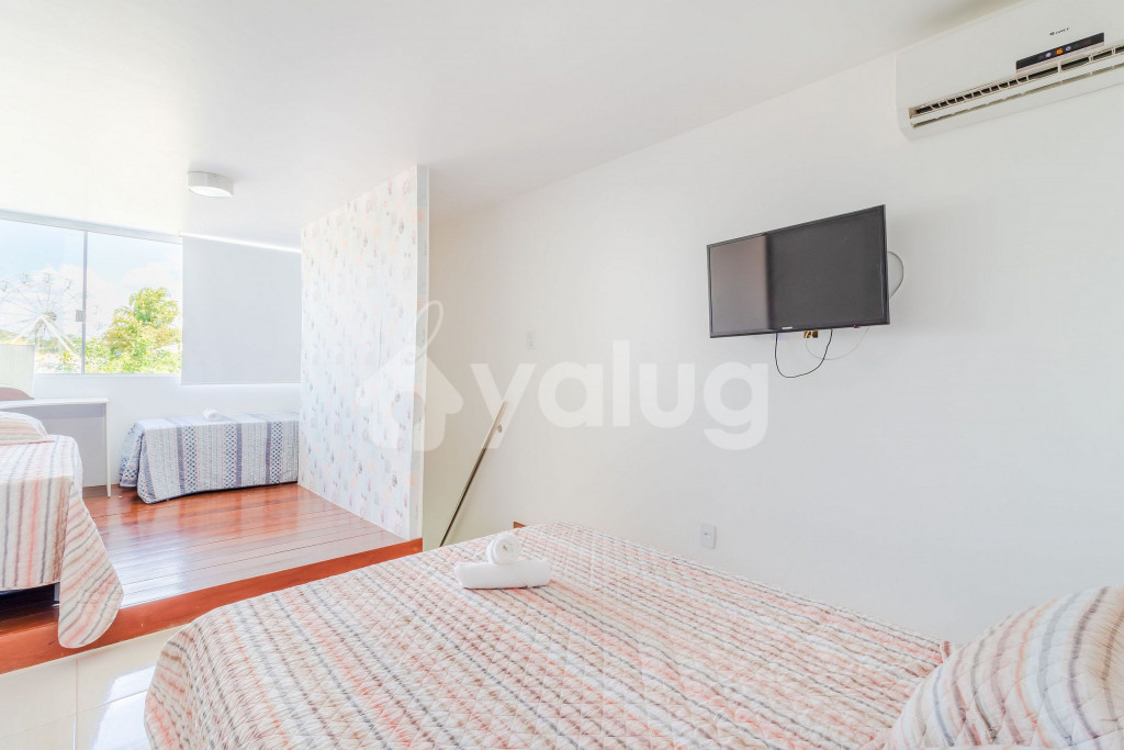 A composição dos quartos é da seguinte forma:Quarto 1 (Térreo): 1 cama Casal, ar condicionado tipo Split, TV, cortina blackout e armários.Quarto 2 (Superior): 1 cama Casal, 2 camas Solteiro, ar condicionado tipo Split, TV, cortina blackout e armários.