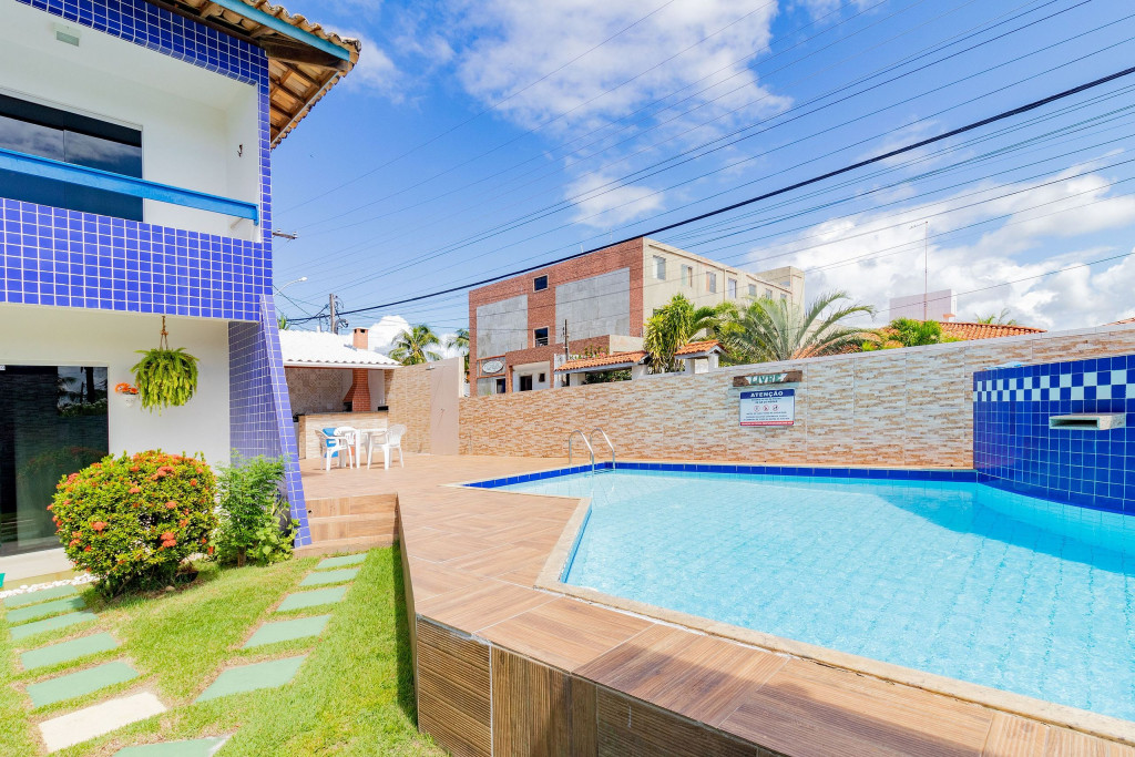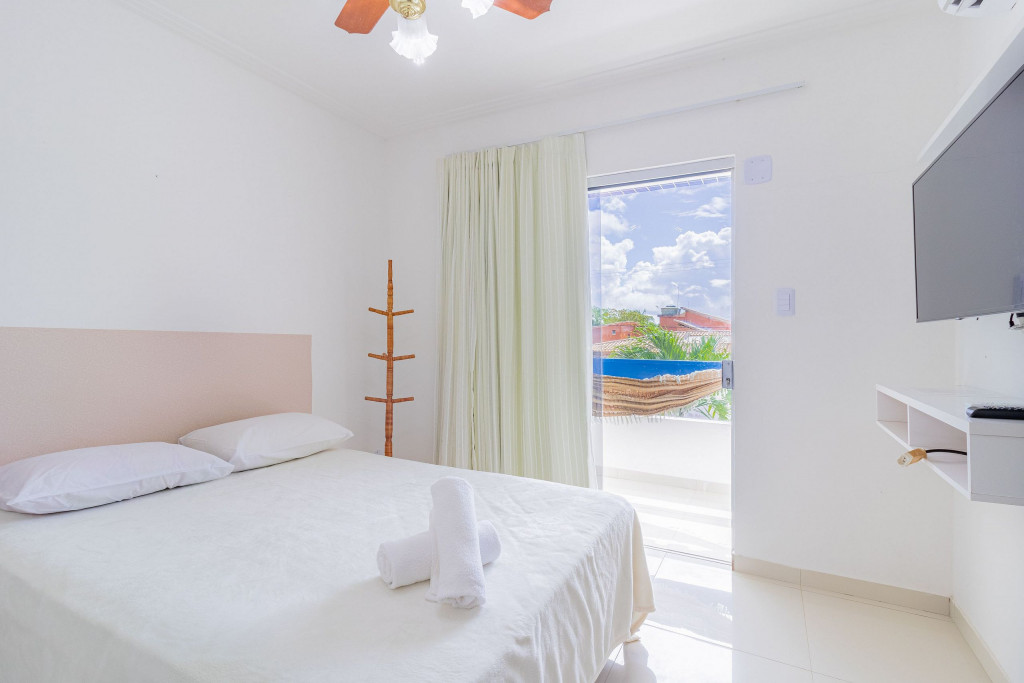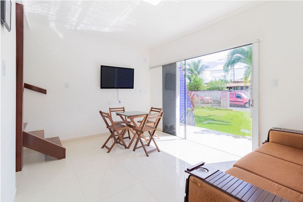 Ótimo Village, composto por 2 suítes com ar condicionado, TV e varanda em uma delas. Além disso, dispõe de uma sala de estar e cozinha integrada. Localizado em Guarajuba, no Village Mar Azul, com portaria e piscina.