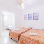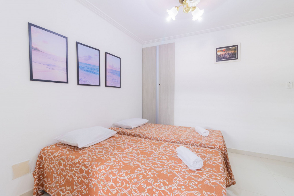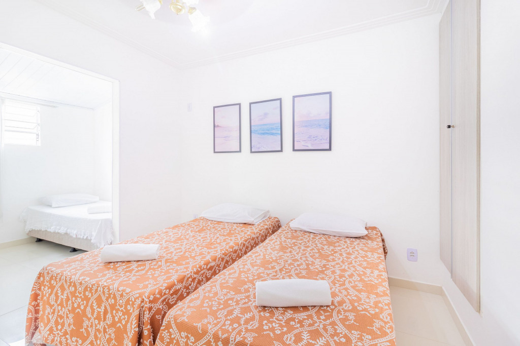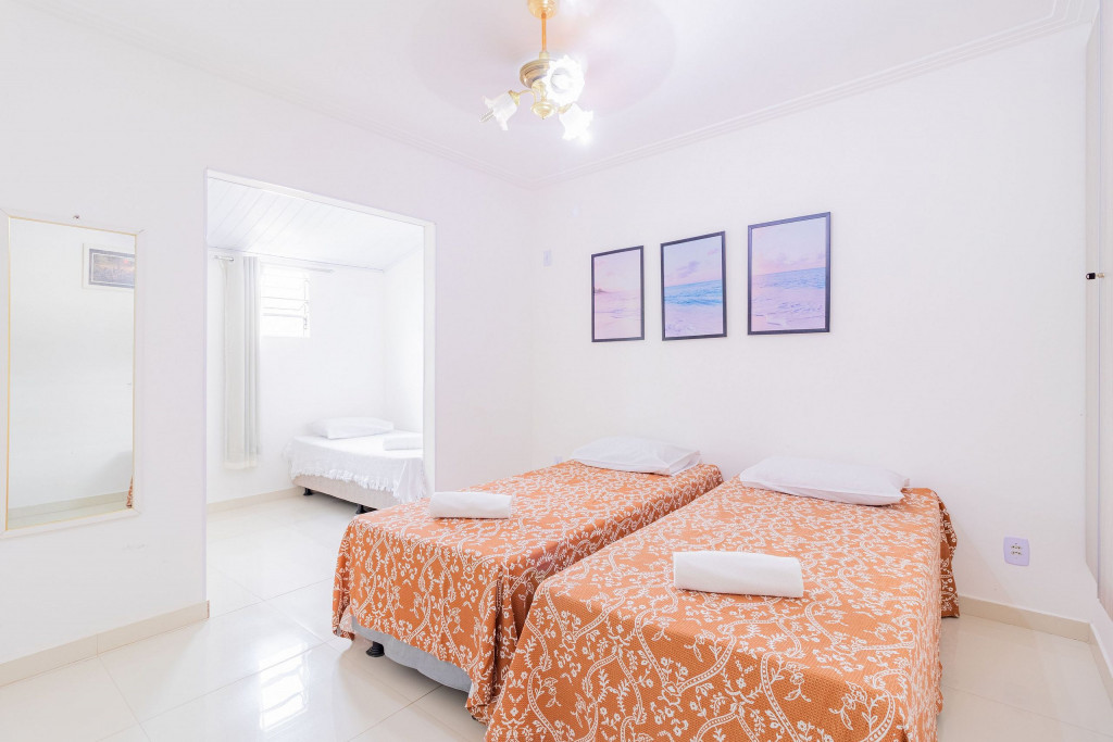 A composição dos quartos é da seguinte forma:Suíte 1 (Superior): 1 cama Casal, ar condicionado tipo split, cortina blackout, armário e Tv.Suíte 2 (Superior): 3 camas Solteiro, 1 cama Casal, ar condicionado tipo split, cortina blackout, armário e ventilador.