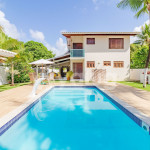 Excelente casa, dispõe de 4 quartos (2 suítes), todos com ar-condicionado, sala de estar e cozinha completa. Local ótimo para descanso e lazer, possui ótima área externa com jardim, churrasqueira e piscina.Obs.: possui um quarto de dependência no andar superior, ao lado da área de serviço, com 1 cama casal.