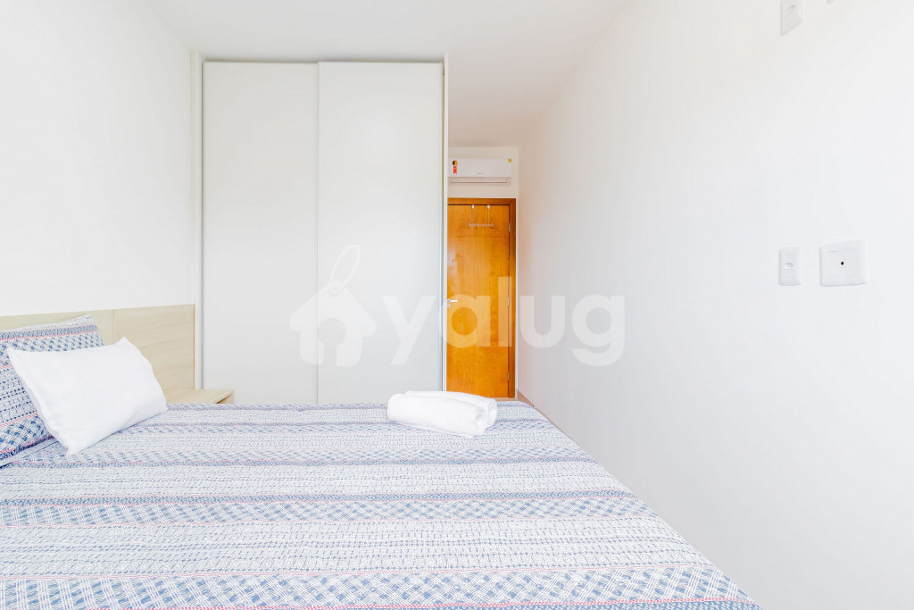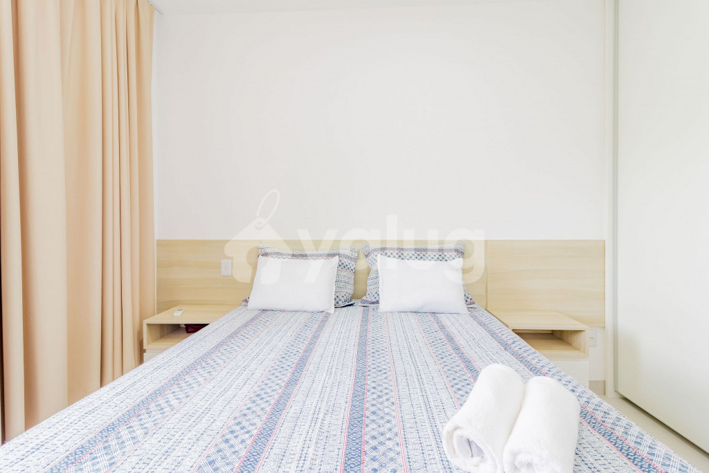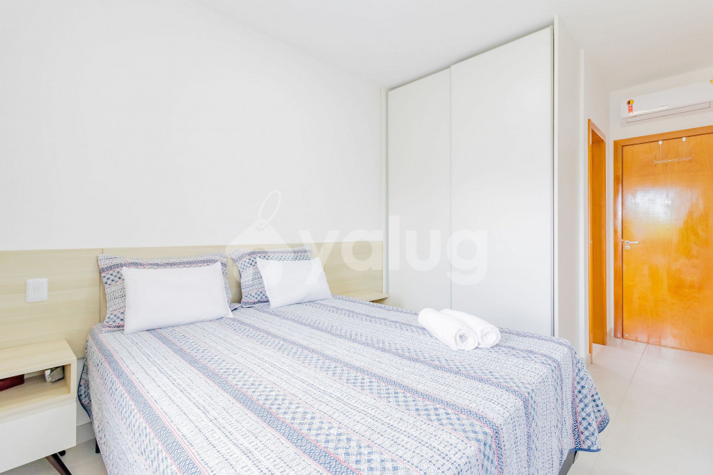 A composição dos quartos é da seguinte forma:- Suíte 1: 1 cama casal, ar condicionado tipo split, armário e cortina blackout;- Suíte 2: 1 cama casal, 1 sofá-cama, ar condicionado tipo split, armário e cortina blackout.Obs.: Possuímos 1 sofá-cama na sala de estar.