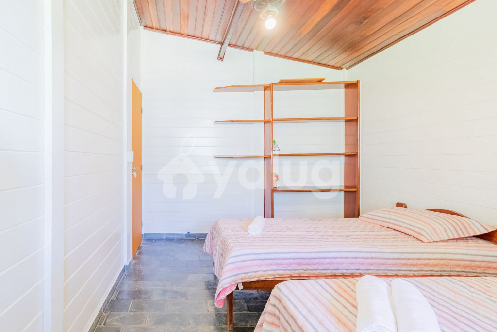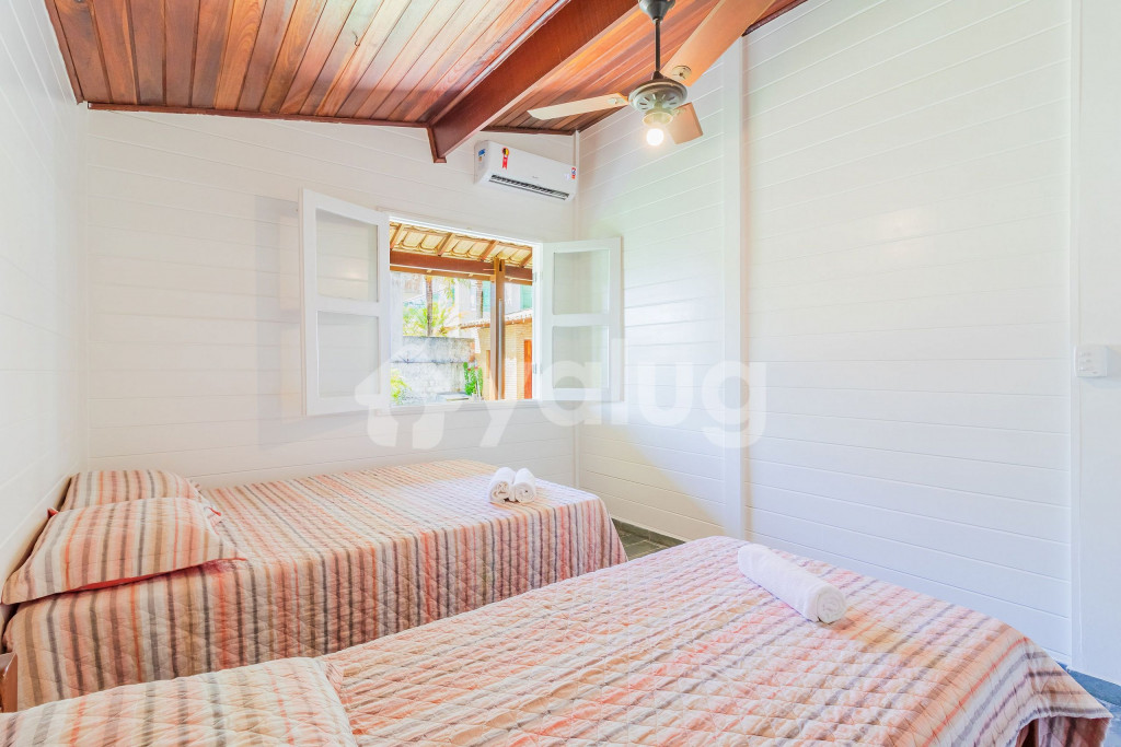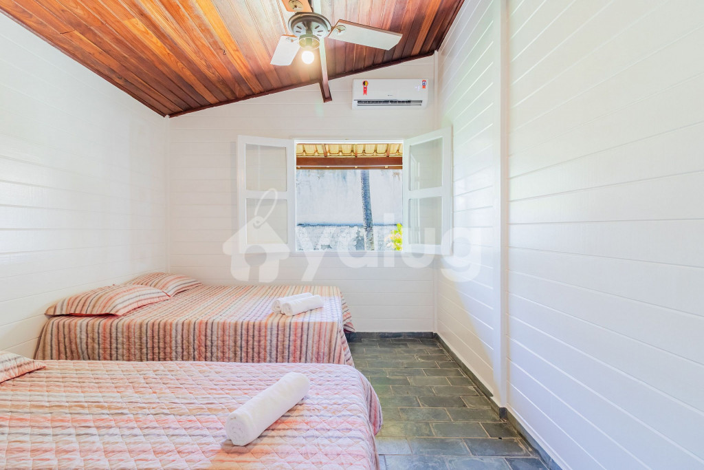 Os quartos são compostos da seguinte forma:Quarto 1: 1 cama casal, ar condicionado tipo split e ventilador;Quarto 2: 2 camas solteiro, 1 colchão solteiro extra, ar condicionado tipo split e ventilador;Quarto 3: 1 cama casal, 1 cama solteiro, ar condicionado tipo split e ventilador;Suíte 1: 1 cama king, armário, ar condicionado tipo split e ventilador.