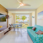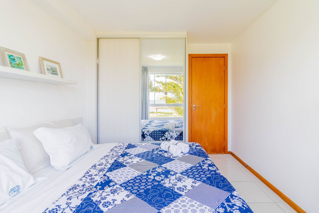 Apartamento com linda vista do mar e coqueiros, na melhor praia de Guarajuba! Condomínio pé na areia, com excelente estrutura, com segurança 24hr, piscinas adulto e infantil, sauna, serviço de bar e restaurante, parque infantil, academia ao ar livre, Wi-Fi e contato direto com a natureza.