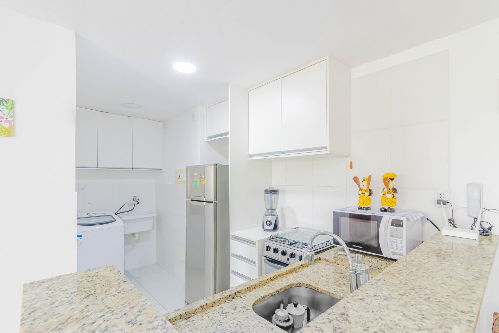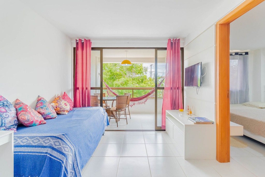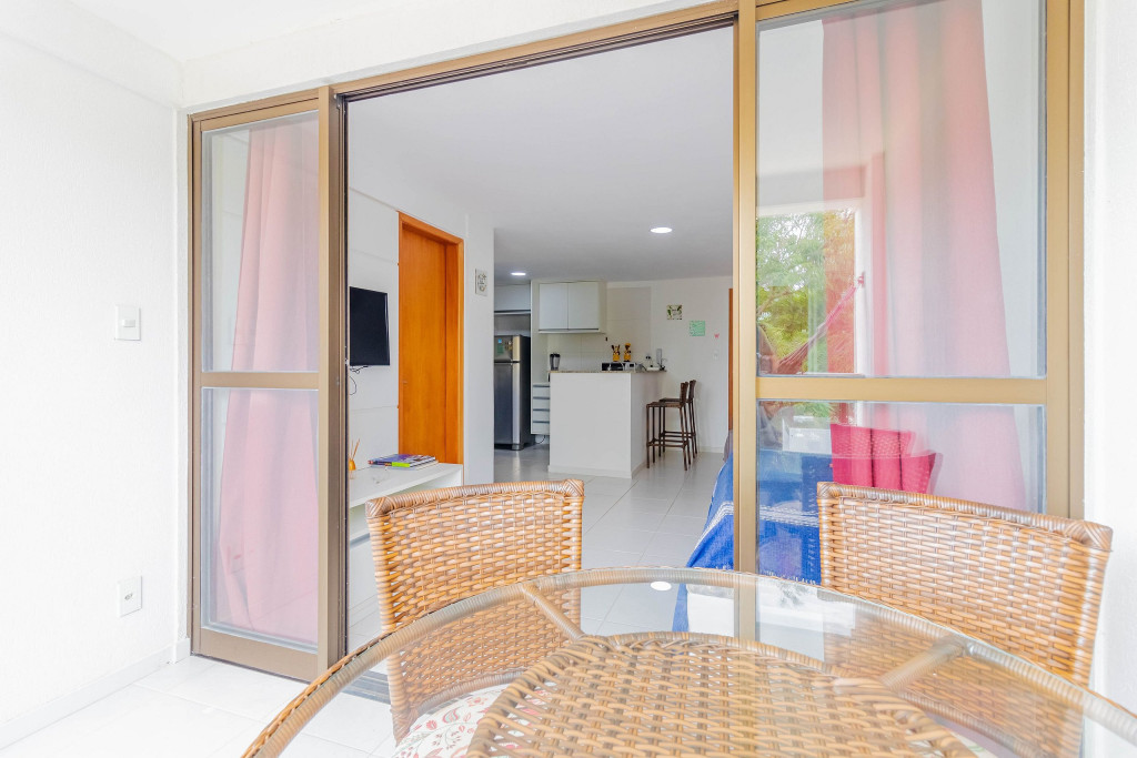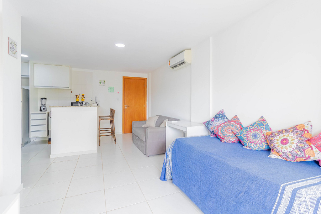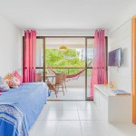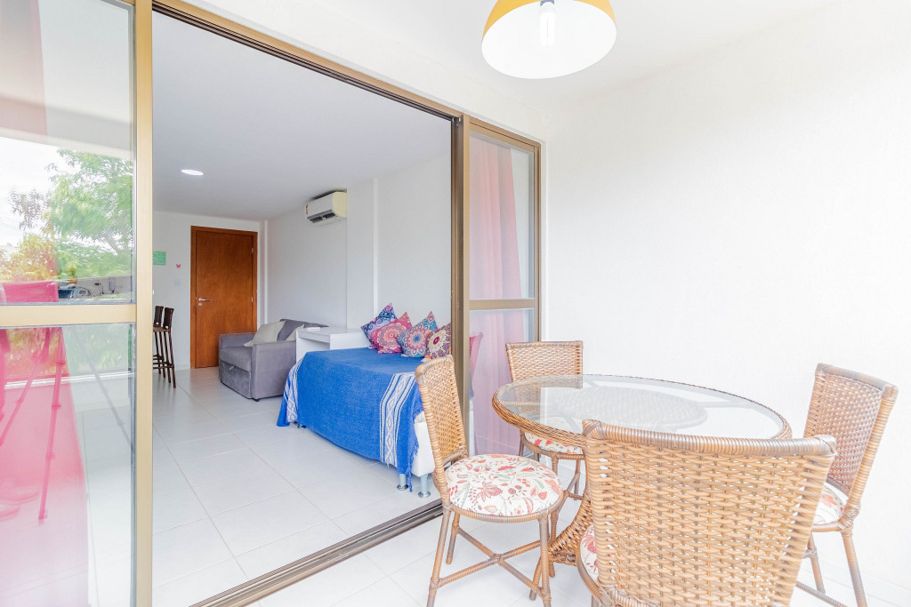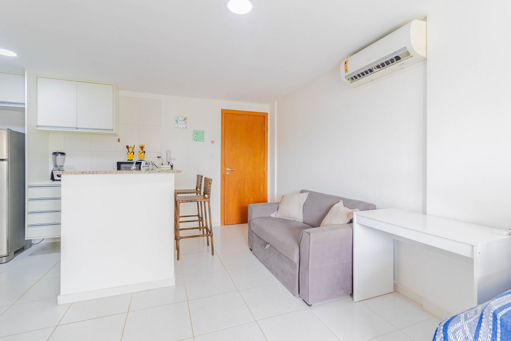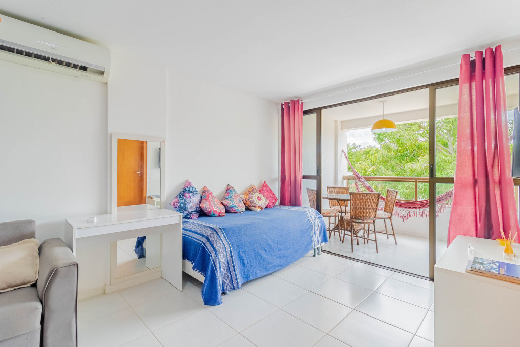 Composto por sala de estar e 1 quarto, ambos com ar condicionado split! Além disso conta ainda com cozinha completa, varanda e uma sala de estar super aconchegante.