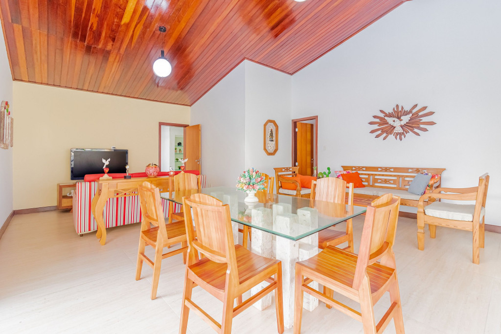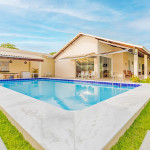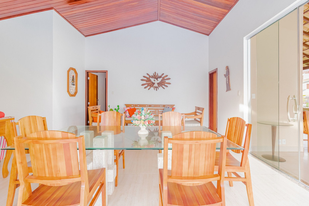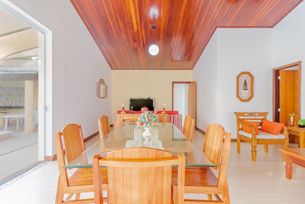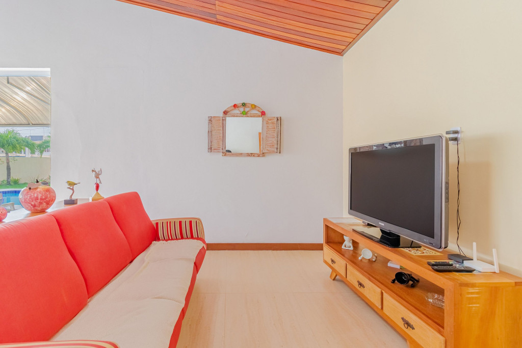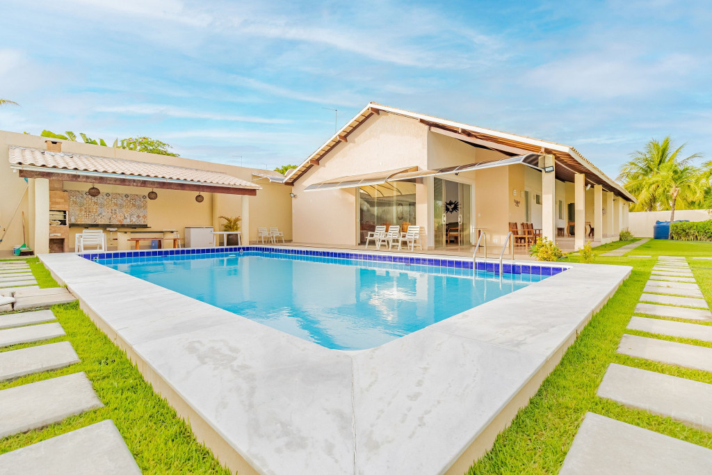 Além da ótima área externa da casa, o condomínio ainda dispõe de segurança 24h, piscina e também uma churrasqueira, para que os hóspedes possam desfrutar como quiserem.
