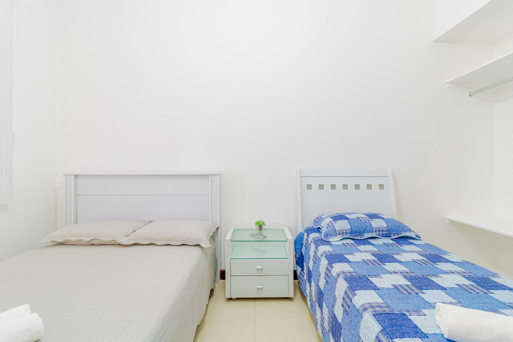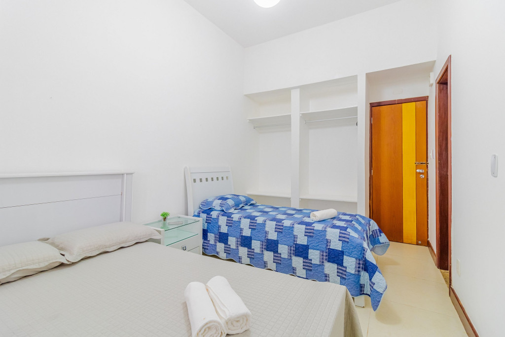 A composição dos quartos é da seguinte forma:Suíte 1: 1 cama casal, ar condicionado split e cortina blackout;Suíte 2: 1 cama casal, 1 cama solteiro, ar condicionado split e cortina blackout;Suíte 3: 1 cama casal, 1 cama solteiro, ar condicionado split e cortina blackout;Suíte 4: 1 cama king, ar condicionado split e cortina blackout;Quarto 1 (Anexo a Suíte 4): 1 cama queen, ar condicionado split, cortina blackout e armáio.