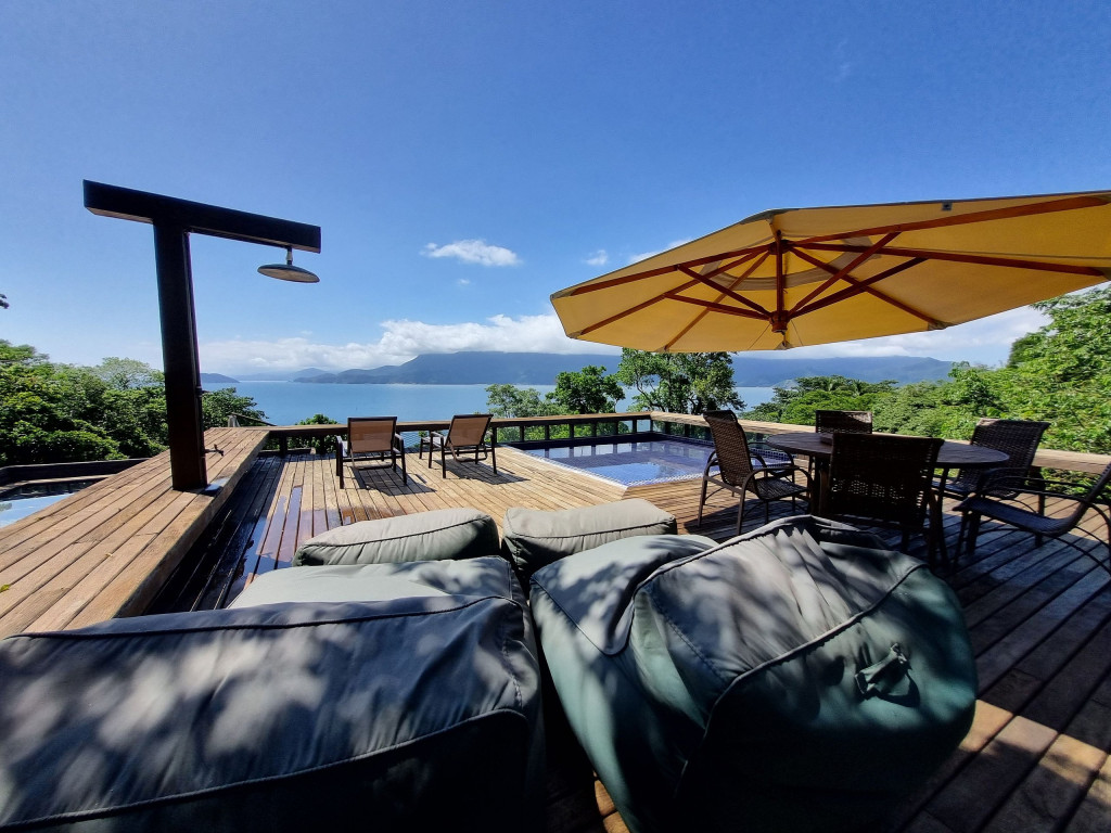Localizada em um condomínio fechado, nossa casa é a opção certa para quem busca alto estilo e tranquilidade. Não importa o ângulo, sempre teremos uma vista deslumbrante do canal azul de Ilhabela e São Sebastião ou do verde da Mata Atlântica.