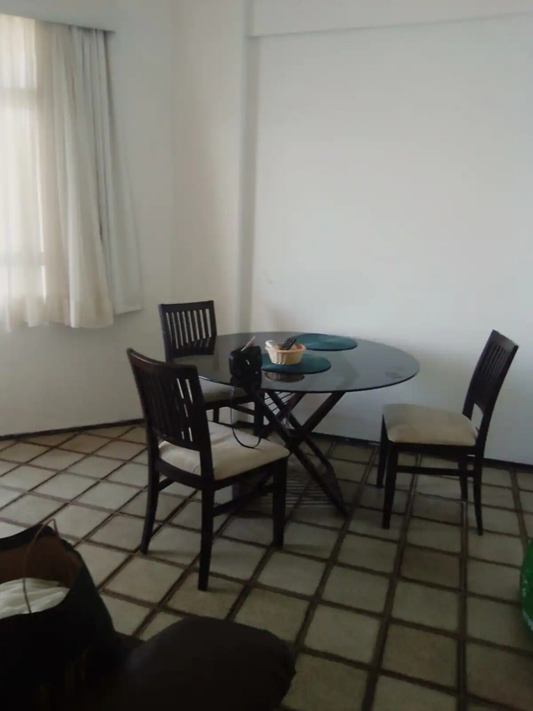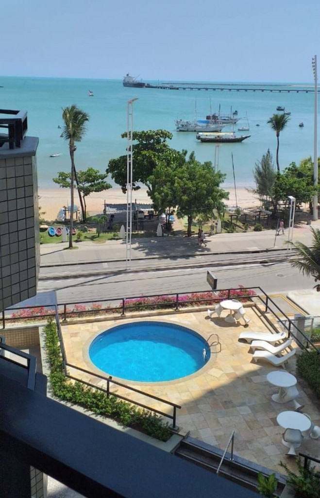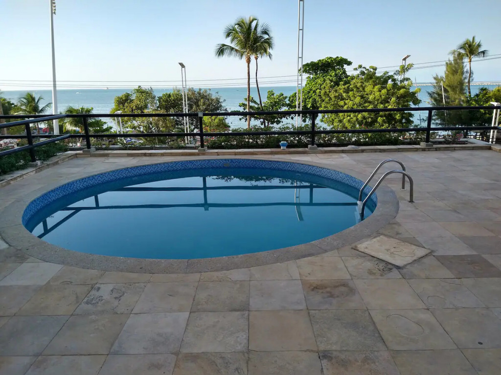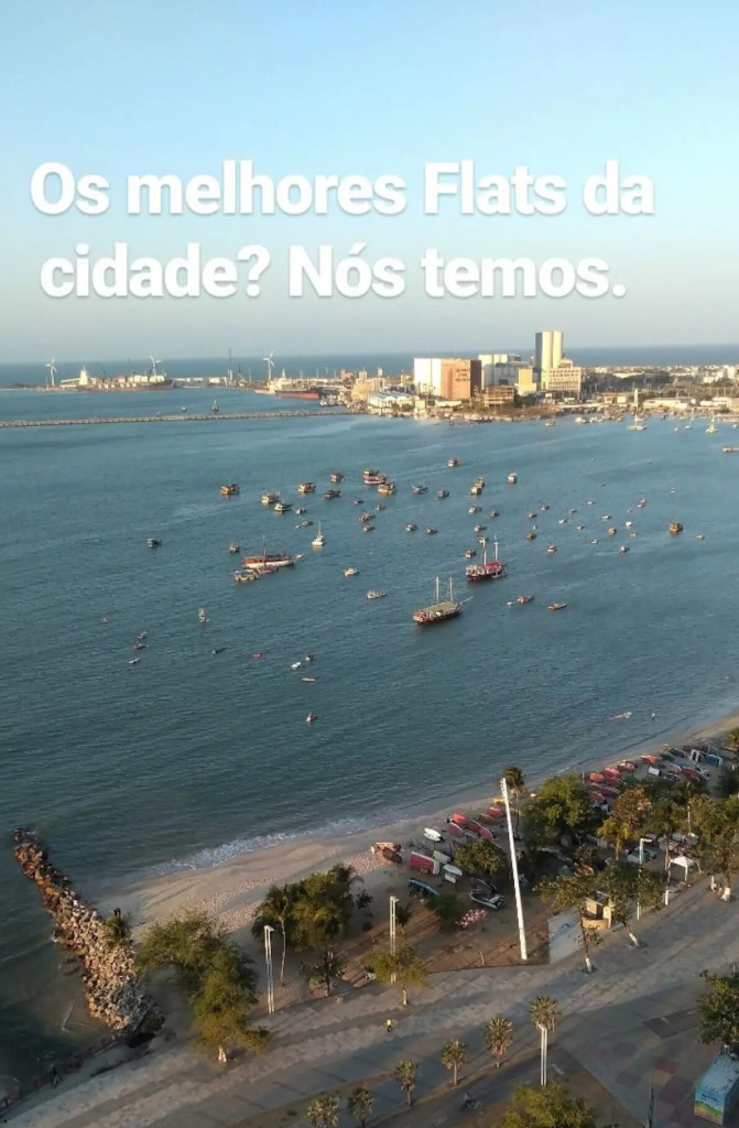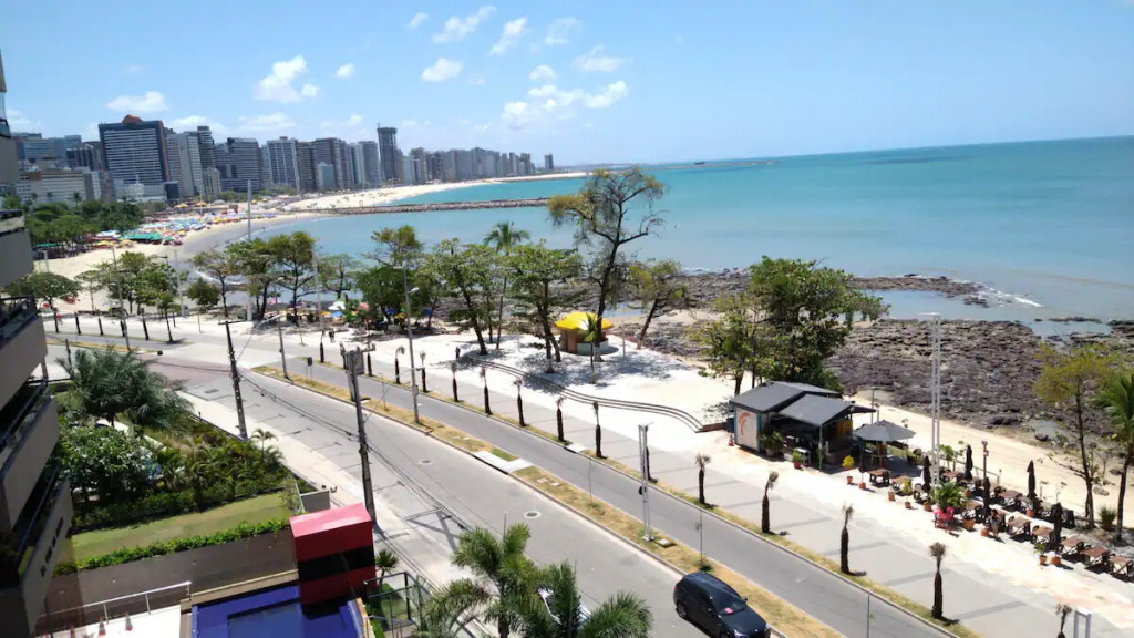 Apartamento completo com suíte, quarto com cama casal Queen e armário, TV LCD, internet, tv á cabo, ar condicionado split na suíte, sala com sofá e uma mesa redonda para fazer refeições e um cantinho para trabalho, cozinha americana equipada com geladeira, fogão e utensílios domésticos. Varanda com vista para o mar e o calçadão da Beira Mar. A posição do apartamento é voltado para o nascente, portanto, bem ventilado.