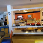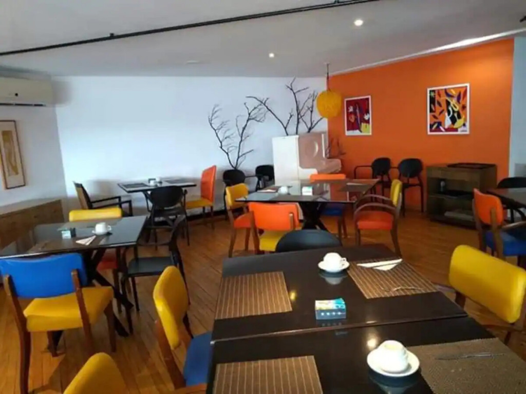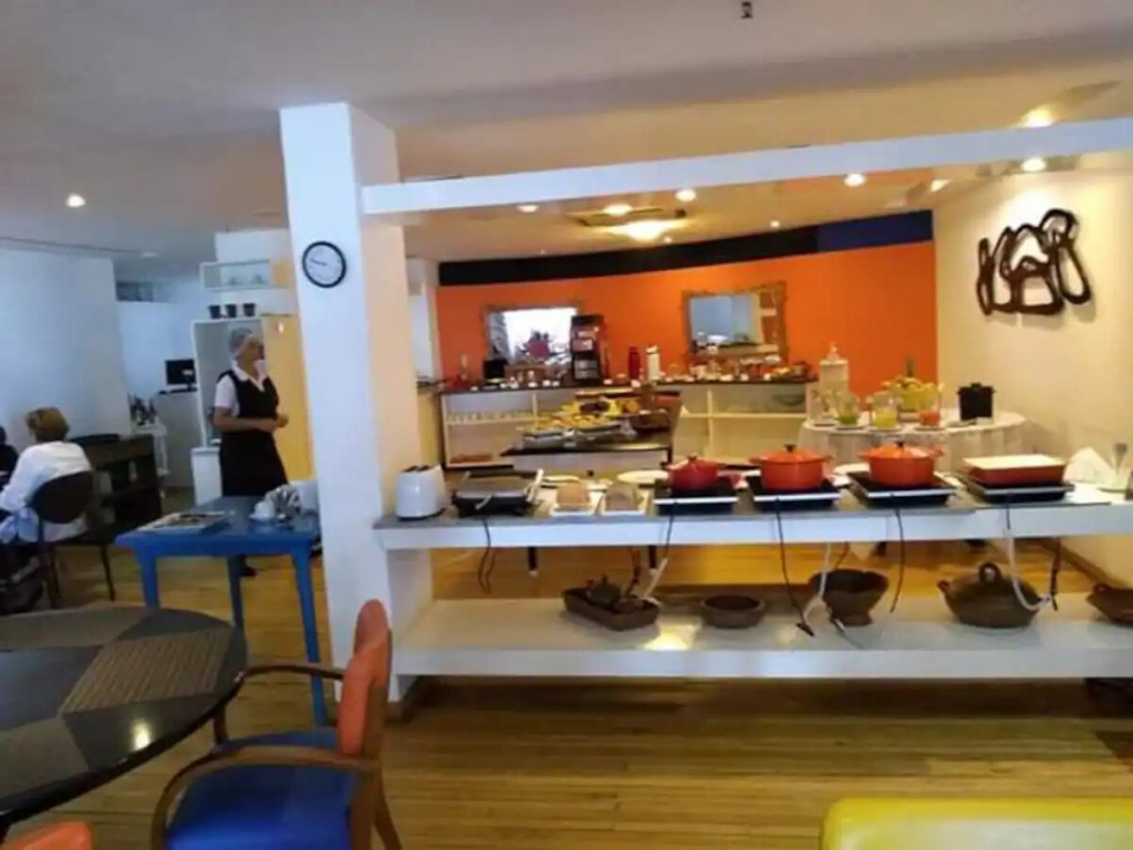 A diária não dá direito ao café da manhã. O apartamento possui cozinha e utensilios domésticos suficientes para duas pessoas. Mas se quiserem tomar um café da manhã fora, o flat dispõe de um excelente restaurante que serve café, almoço e janta pagos no próprio local.
