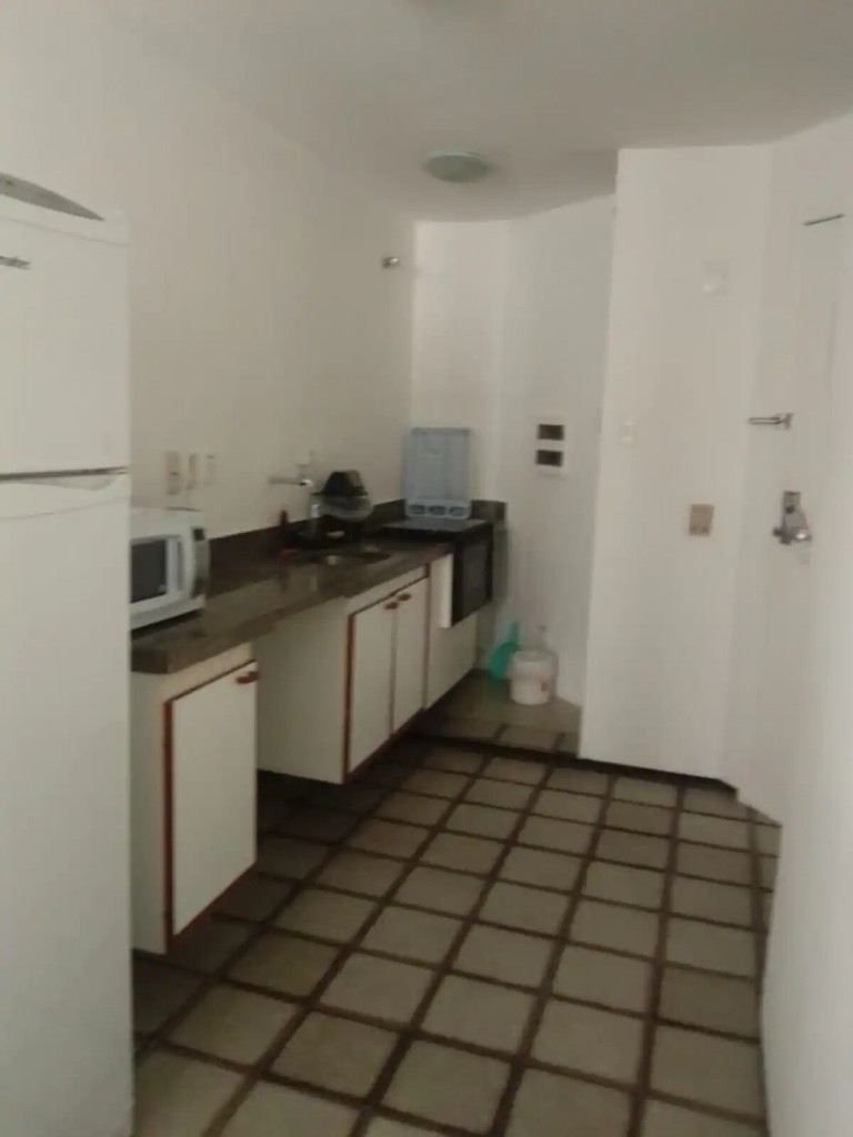 O espaço é aconchegante, com boa cama Queen e banheiro privativo (suíte), sala de jantar/estar com sofá. Possui uma pequena varanda com vista para o mar e para o calçadão da Beira Mar ideal para fazer caminhadas e compras na feirinha de artesanato. Cozinha tipo americana para fazer pequenas refeições com microondas, fogão elétrico e utensílios domésticos.