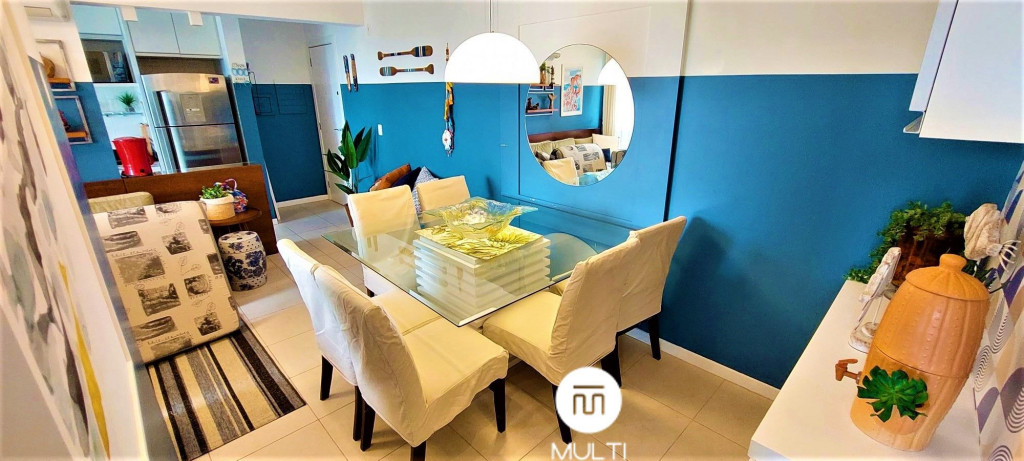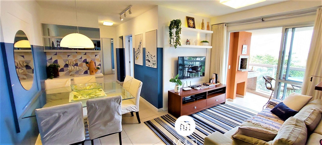 O apartamento conta com duas varandas com telas protetoras, sendo uma na sala de estar com churrasqueira gourmet e a outra na suíte casal, todas com vista mar.O conforto é seu principal referencial, pois além de ser um apartamento aconchegante e super equipado (roupas de cama, travesseiros, cobertores, toalhas de corpo e rosto, utensílios de cozinha, máquina de café expresso, microondas, forno e fogão, geladeira, máquina de lavar roupa), ele possui ar-condicionado Split nos dois quartos e na sala, o que deixa sua estadia muito mais confortável e agradável, rede de internet Wi-Fi, além de atender aqueles que curtem assistir um filminho na NETFLIX, pois o apartamento possui dois televisores SMART TV, um na sala e outro na suíte.Ambos os quartos possuem cama de casal, super confortáveis, com cabeceiras com acesso USB em suas tomadas e cortinas com blackout para deixar o sono ainda mais relaxante.O apartamento possui dois banheiros sendo um suíte e o outro com lavabo separado da área de banho, sendo que seus chuveiros são com aquecimento a gás, deixando o banho muito mais agradável e na temperatura que desejar.O imóvel conta com uma vaga privativa coberta, protegida dos demais veículos da garagem por estar situada no meio de duas pilastras e próximo ao acesso do elevador da torre.O Condomínio Nautilus Home Club, possui: quadras de esportes, campo de futebol, academia, 2 piscinas, playground, brinquedoteca e sala de jogos. Você pode trazer seu animalzinho de estimação (pequeno porte). No condomínio há espaço Pet.