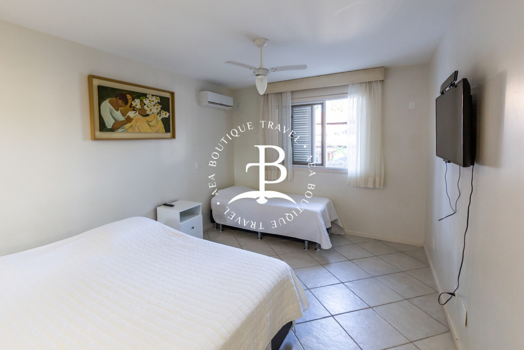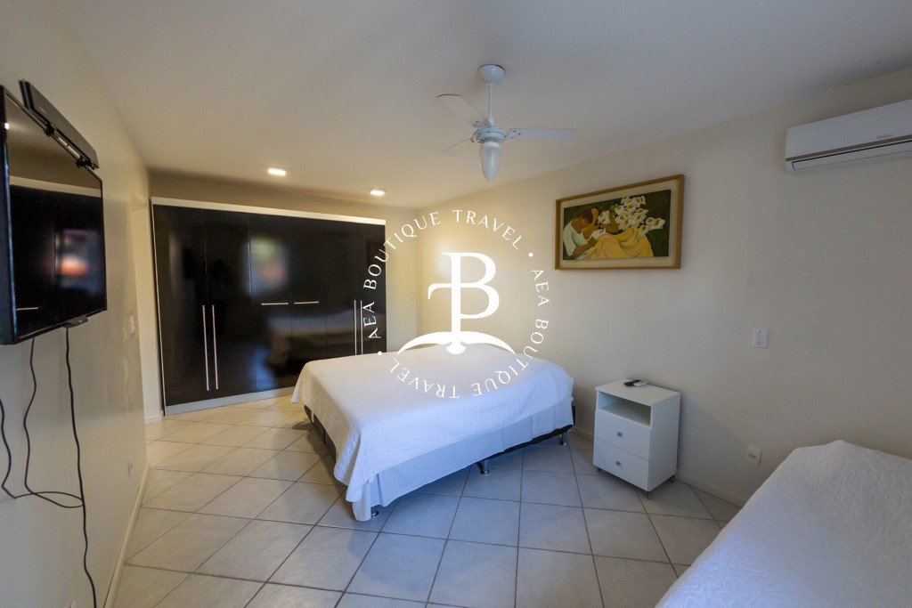 Os quartos têm todo o conforto que você precisa, todos com ar condicionado, configuração dos quartos: quarto 1 (suíte ‘máster’) 1 Cama(s) queen size + 1 Cama(s) de solteiro, tv e banheiro com hidromassagem. Quarto 2: (suíte) 1 Cama(s) queen size + 1 Cama(s) de solteiro. Quarto 3: 1 Cama(s) queen size + 1 Cama(s) de solteiro e banheiro no corredor. Quarto 4: 1 Cama(s) queen size + 1 Cama(s) de solteiro e banheiro no corredor. Quarto 5: (dependência de empregada) 1 Cama(s) de solteiro e ventilador de teto.