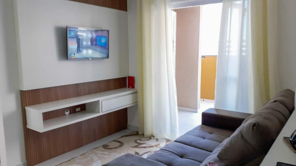Apartamento térreo, com sacada diferenciada, e de FRENTE PARA O MAR! Com 2 quartos sendo um com ar, completo com smartTV e Internet de 100megas.