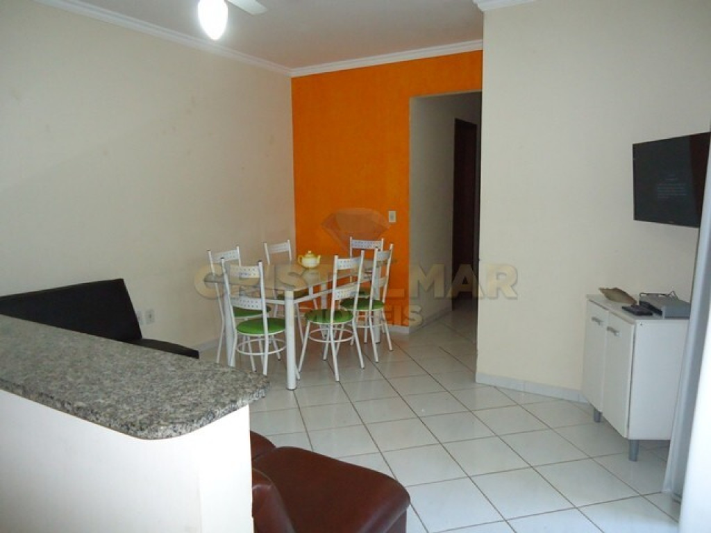 Sala de estar e jantar integradas com TV;