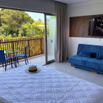 O flat Île de Pipa está localizado no primeiro andar com varanda e dispõe de: mesa e cadeiras, enxoval premium, cama king, sofá cama, TV, frigobar, cafeteira, ítens para refeições rápidas, ar condicionado, ducha aquecida e secador de cabelos.