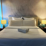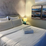 O flat Vista está localizado no primeiro andar com varanda e dispõe de: cama king, enxoval premium, sofá, ar condicionado, TV, frigobar, cafeteira, ítens para refeições rápidas, ducha aquecida e secador de cabelos.