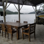 No primeiro andar se encontra o nosso extenso DEC flutuante para mergulho no mar e o cais para saída das embarcações e uma sala de apoio para guardar os moveis e objetos de sol e coletes . Também se encontra a churrasqueira e uma mesa para refeições !!!