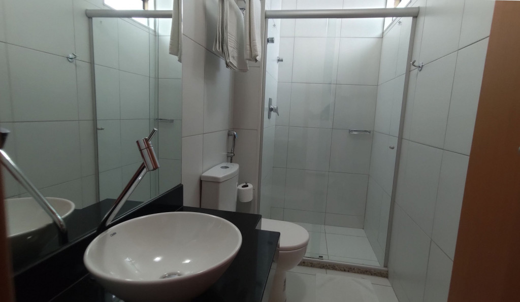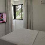 Apartamento com sala, cozinha, varanda e duas suítes sendo uma reversível.Suíte principal com cama Queen TV e Ar Condicionado.Suíte reversível com TV e Ar Condicionado.Sala com sofá-cama, TV e uma agradável varanda para relaxar.Cozinha equipada com Geladeira, micro-ondas, fogão, liquidificador, sanduicheira, panelas, louças, talheres, etc..Disponibilizamos roupas de cama/toalhas e WI-FI.O prédio conta com elevador.