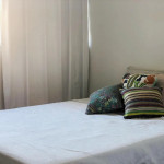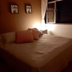 Um quarto de casal tem ar condicionado e o outro quarto de casal tem ventilador. Ambos tem cortinas black out.