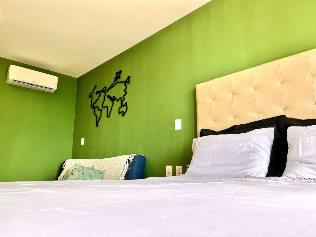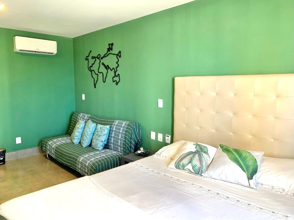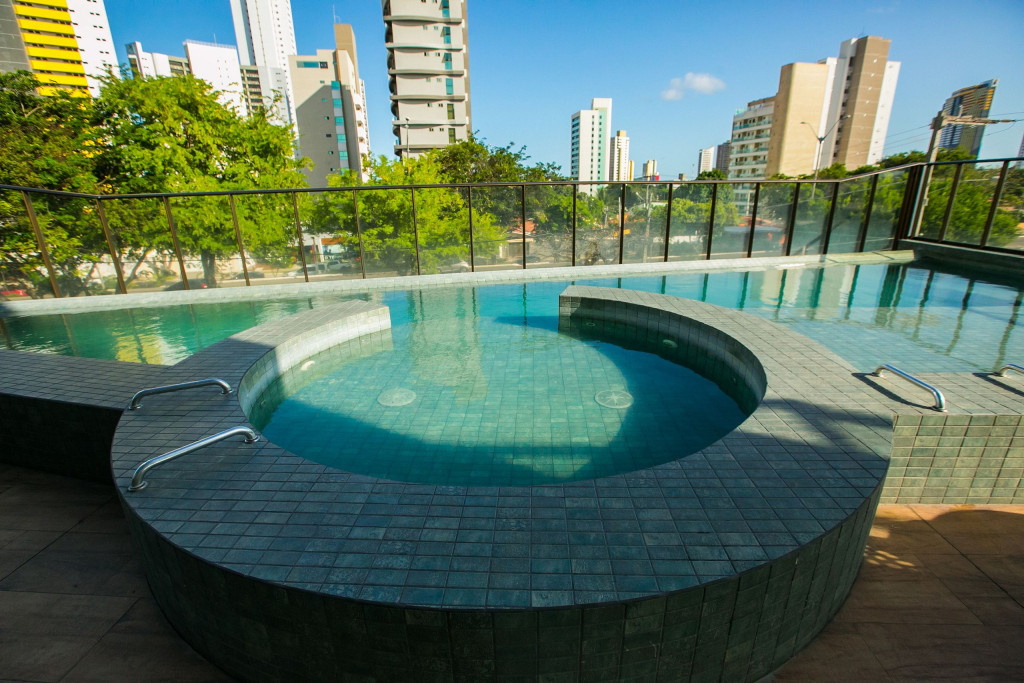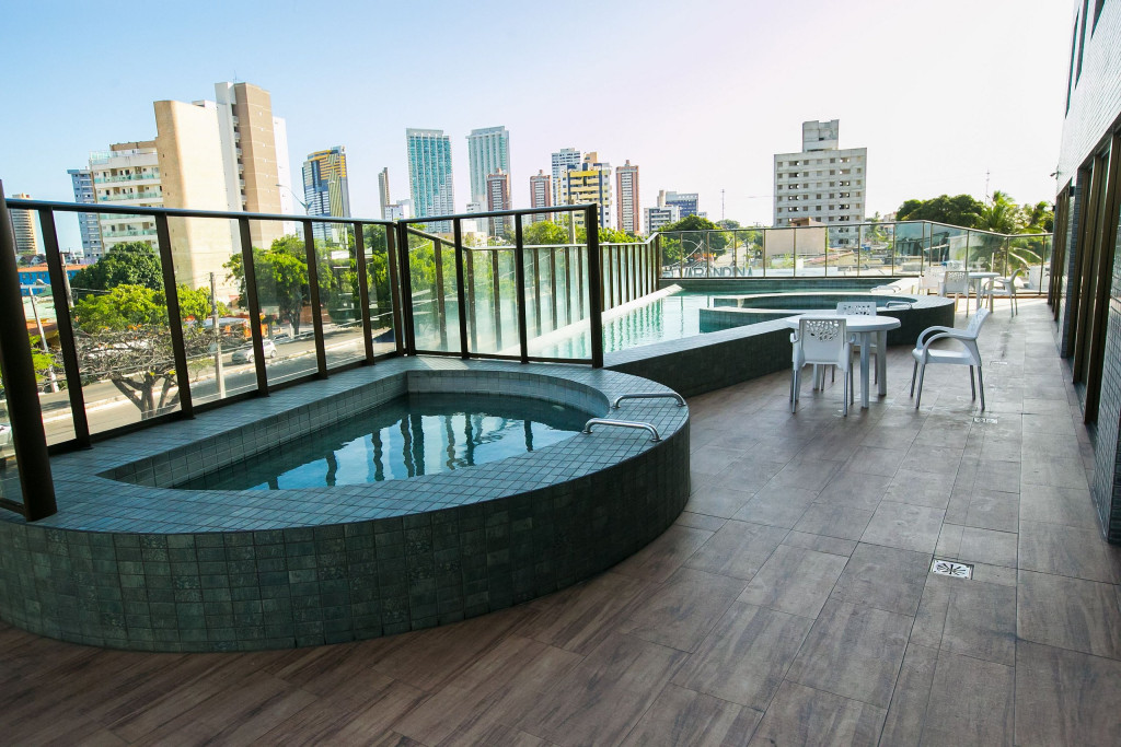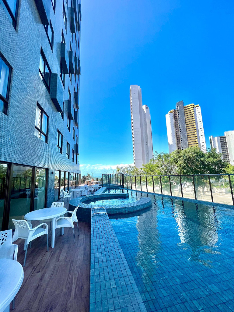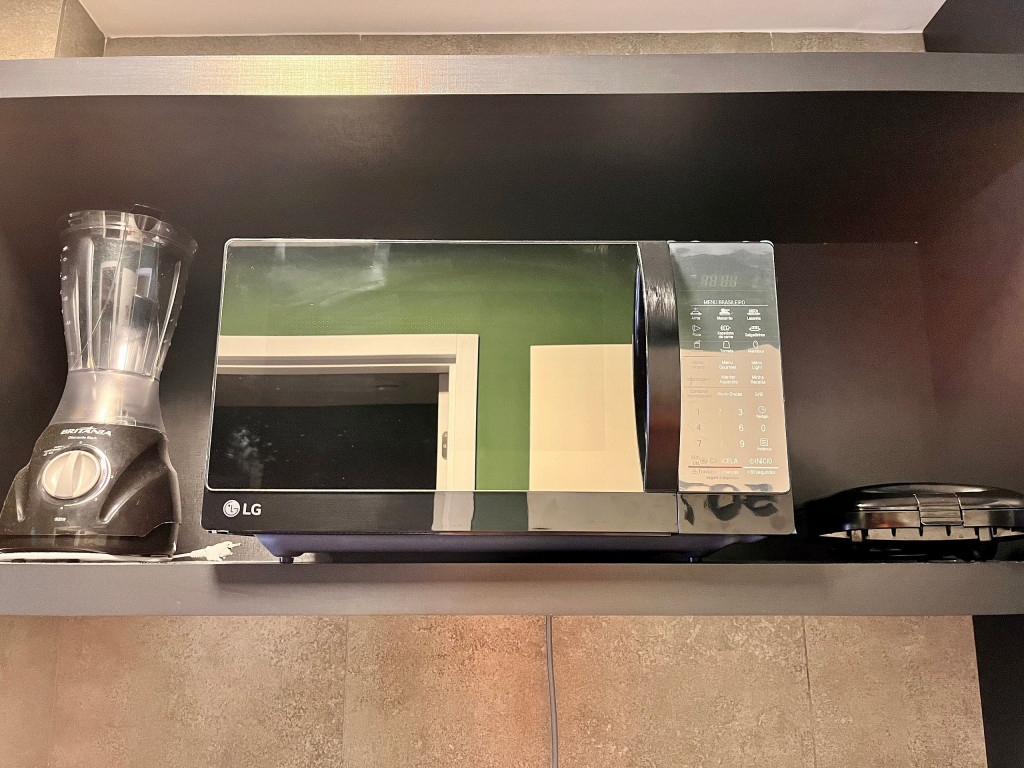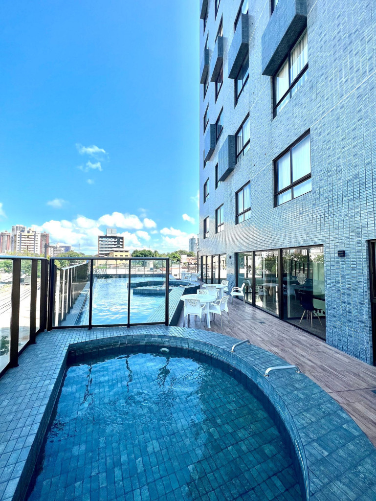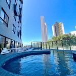 Flat moderno em Ponta Negra, com piscinas, estacionamento e recepção 24h. Quarto com cama Queen e sofá-cama, lençóis, toalhas, ar-condicionado, Smart TV e Wi-Fi. Cozinha completa: frigobar, micro-ondas, liquidificador, cafeteira, fogão (2 bocas) e utensílios. Próximo a pontos turísticos.