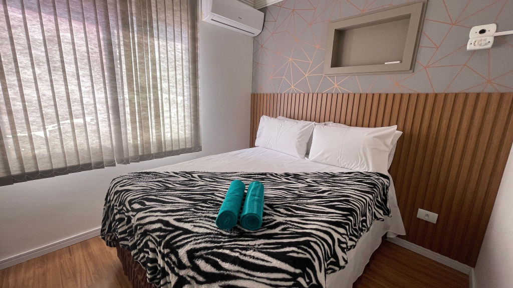 Possui cama de casal e sofá-cama, cozinha, 1 AC, TV 40", WI-FI. Portaria 24
