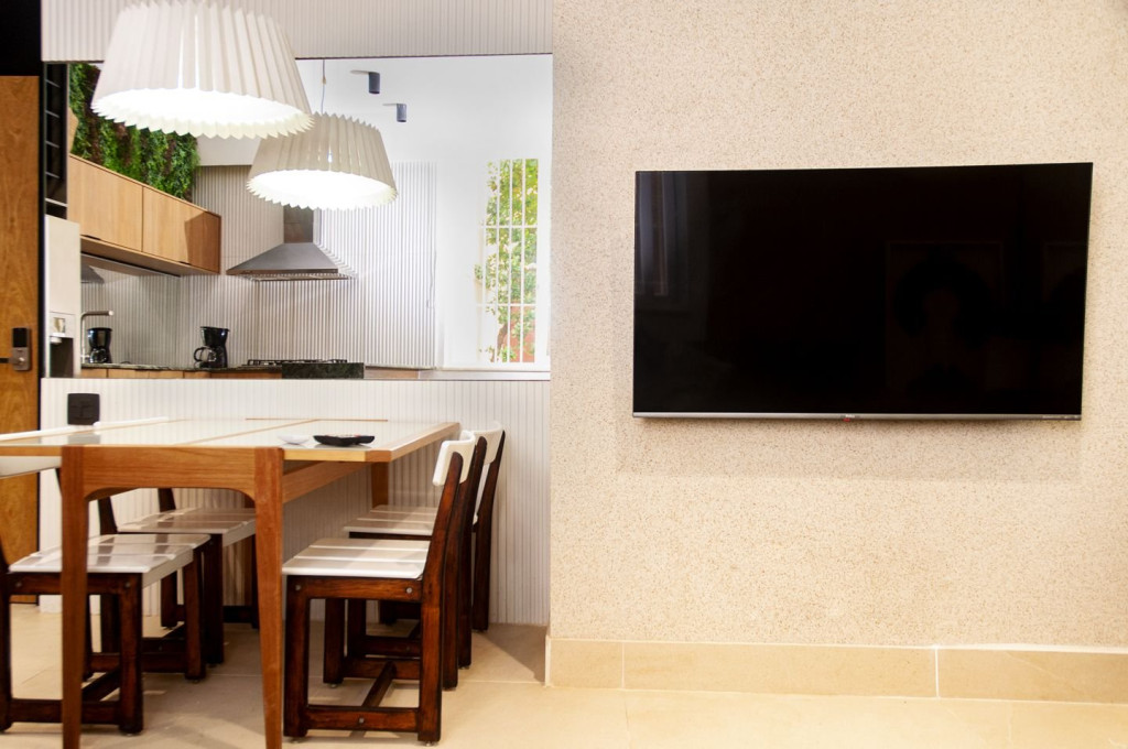 1) Wifi, TV, ambientes climatizados, muitas funcionalidades de conforto;