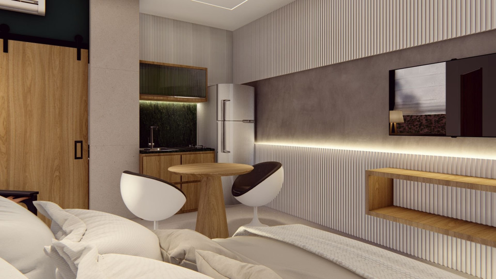 Sua hospedagem possui 1 cama de casal, 1 cama auxiliar, TV a cabo, Wi-Fi, além de itens de casa e água quente.