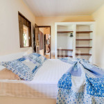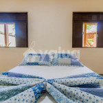 Suíte 4 (Externa - Superior): 1 cama casal, 1 cama solteiro, ventilador e armário.