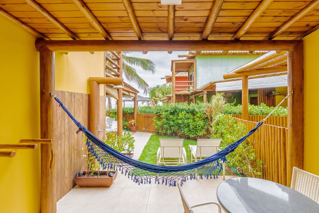 As varandas do Bangalô são um convite para relaxar e desfrutar ao som do mar! Benefícios que somente uma casa pé na areia pode proporcionar. Além disso, o condomínio dispõe de uma piscina vista mar, parquinho infantil e acesso privativo à praia!
