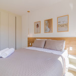 Quarto 1: 1 cama queen, 1 cama solteiro (beliche queen c/ solteiro em cima), ar condicionado split, cortina blackout e armário.