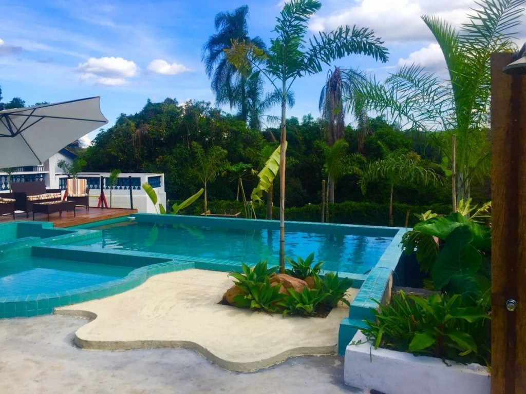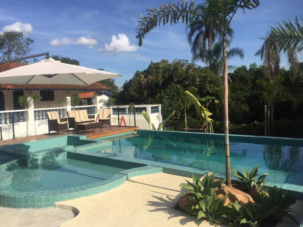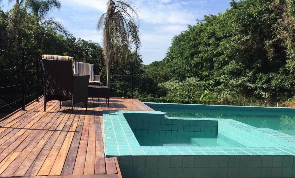 Espaço com piscina , churrasqueira, e uma deliciosa jacuzzi com hidromassagem para relaxar, cozinha equipada, televisão e sofá para acomodar os hóspedes, mesas e cadeiras, espreguiçadeira e2 guardas sol. Quadra de vôlei de areia,boa para prática de atividade física, além de uma deliciosa piscina elevada do chão,o que proporciona uma água mais quente,mesmo a piscina não sendo aquecida,os hóspedes conseguem aproveitar bem,mesmo em dias mais frios, também disponibilizamos queimadores,onde os hóspedes possam fazer fogueiras na área externa nos dias de inverno