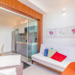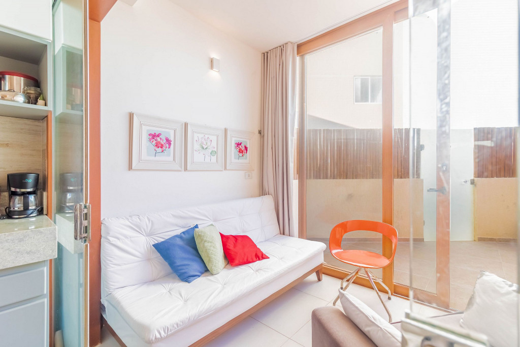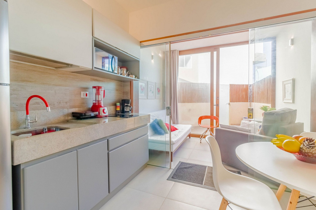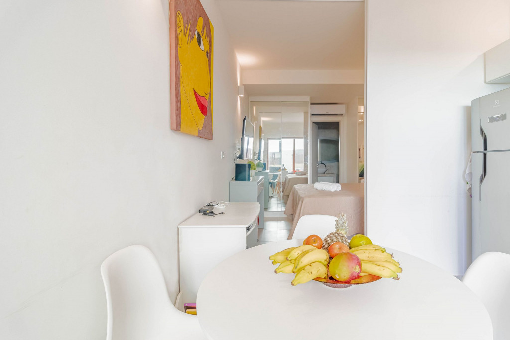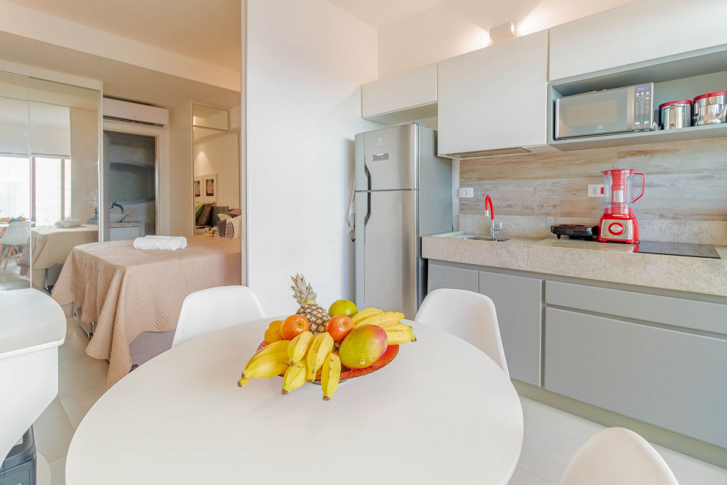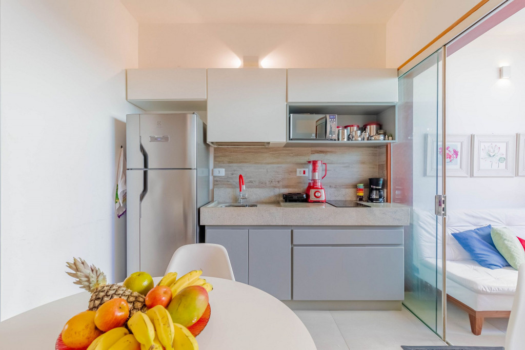 O Flat foi pensado no maior conforto possível para os hóspedes, dispondo de um banheiro privativo, varanda e uma cozinha americana conjugada com o quarto. Para o descanso dos hóspedes, dispõe de uma cama queen, ar condicionado split, cortina blackout e TV.