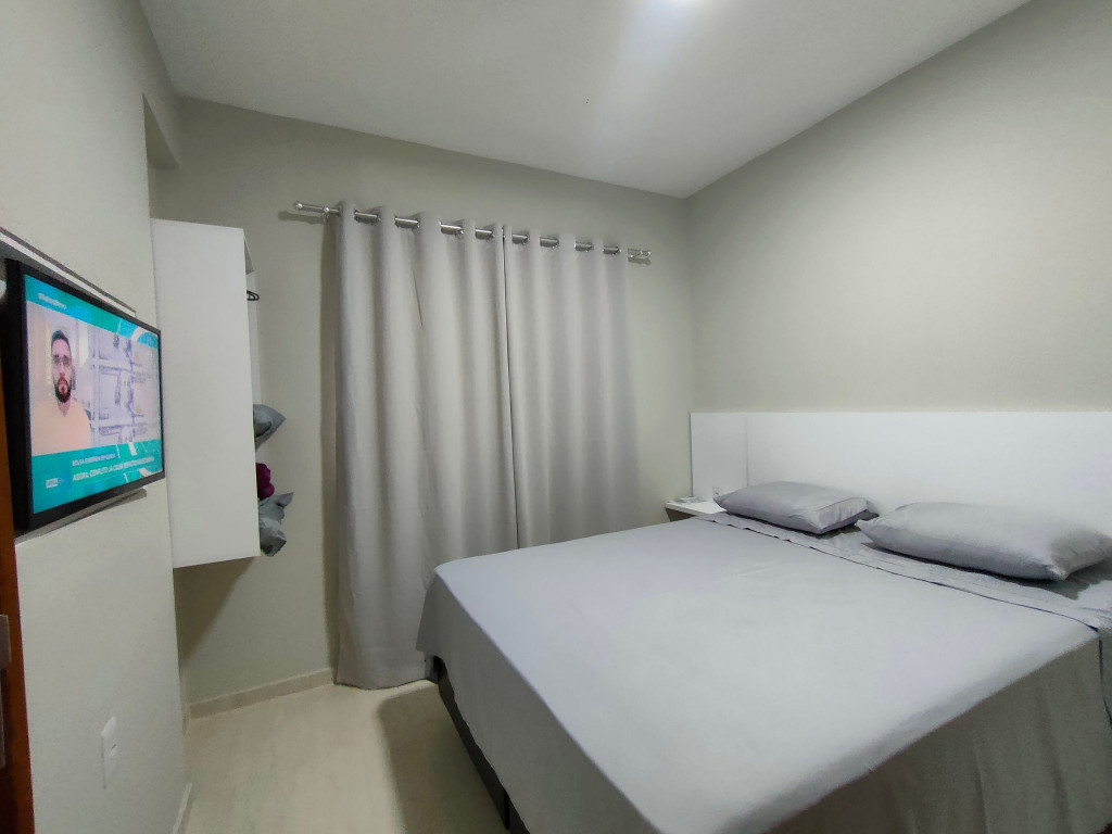 Relaxe neste espaço calmo e cheio de estilo. Apartamento: quarto com cama queen, ar-condicionado, Tv girátoria (atende quarto e sala); sala com sofá cama; cozinha completa com tudo que você precisa para preparar suas refeições; lavanderia com tanque e varal; varanda com churrasqueira e vista para piscina. Piscina maravilhosa com cascata e iluminação especial. Tudo isso pertinho da praia!!!!