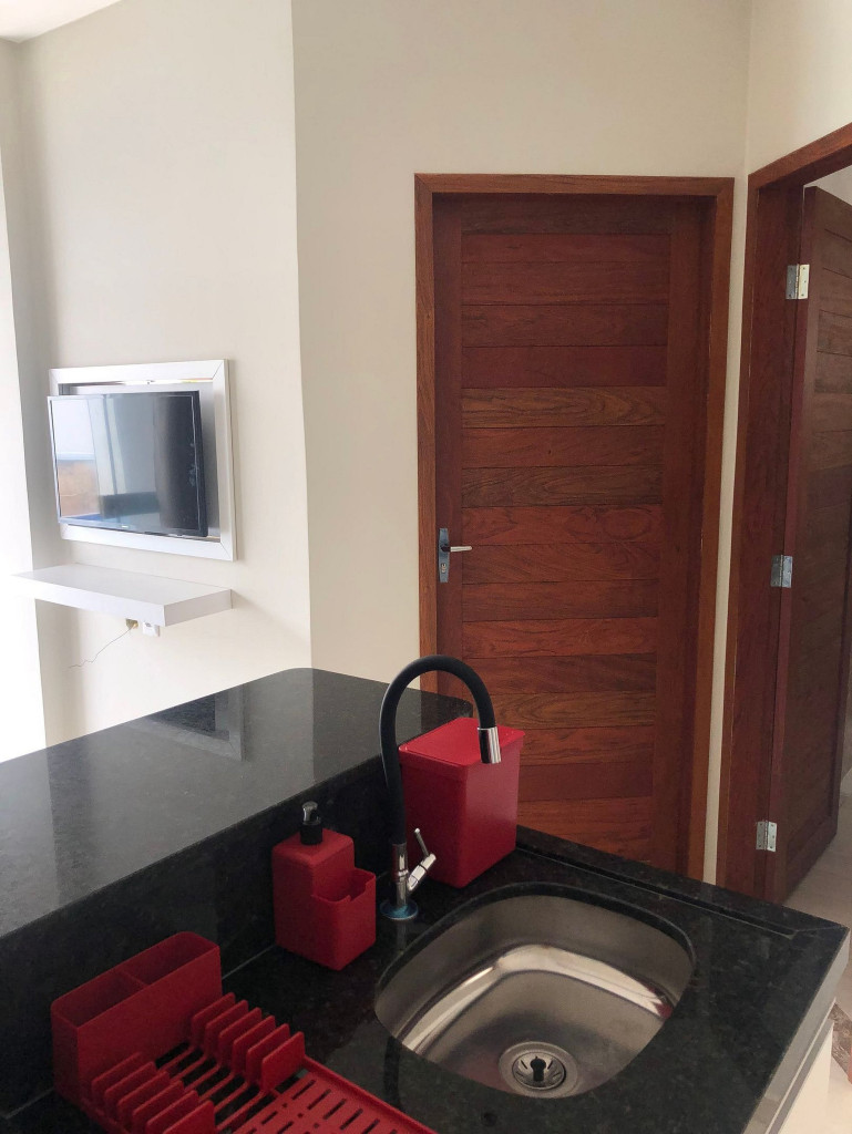 Relaxe neste espaço calmo e cheio de estilo. Apartamento: quarto com cama queen, ar-condicionado, Tv girátoria (atende quarto e sala); sala com sofá cama; cozinha completa com tudo que você precisa para preparar suas refeições; lavanderia com tanque e varal; varanda com churrasqueira e vista para piscina. Piscina maravilhosa com cascata e iluminação especial. Tudo isso pertinho da praia!!!!
