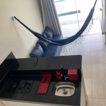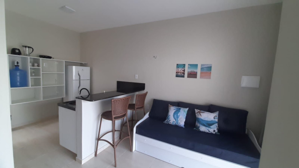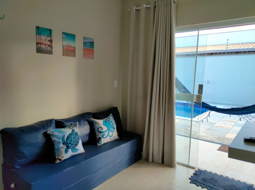 Relaxe neste espaço calmo e cheio de estilo. Apartamento: quarto com cama queen, ar-condicionado, Tv girátoria (atende quarto e sala); sala com sofá cama; cozinha completa com tudo que você precisa para preparar suas refeições; lavanderia com tanque e varal; varanda com churrasqueira e vista para piscina. Piscina maravilhosa com cascata e iluminação especial. Tudo isso pertinho da praia!!!!